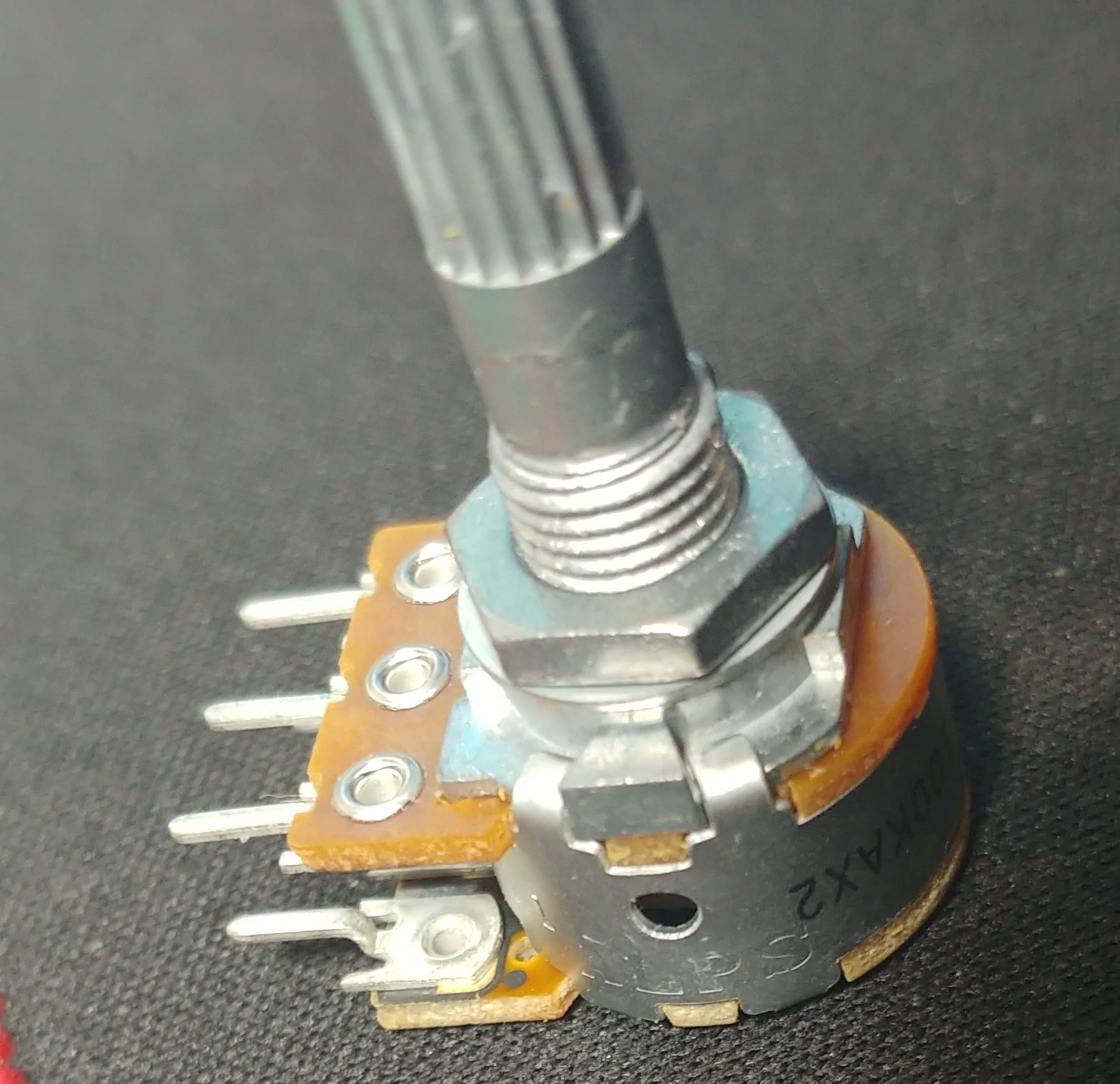 Логарифмический, сопротивления 46,2 кОм и 45,1 кОм. В средним положении вала, между левым выводом и движком сопротивления 8,1 кОм и 7,5 кОм.