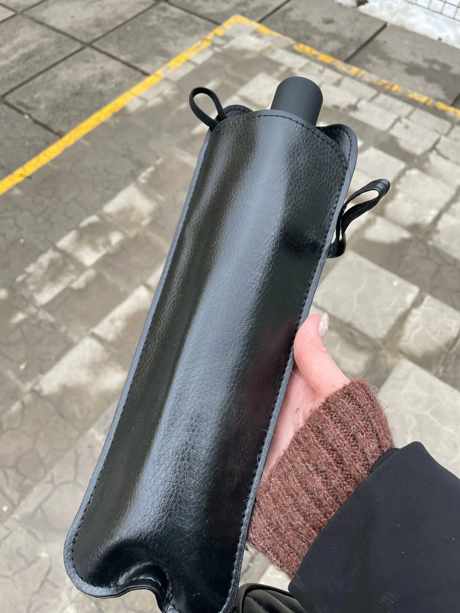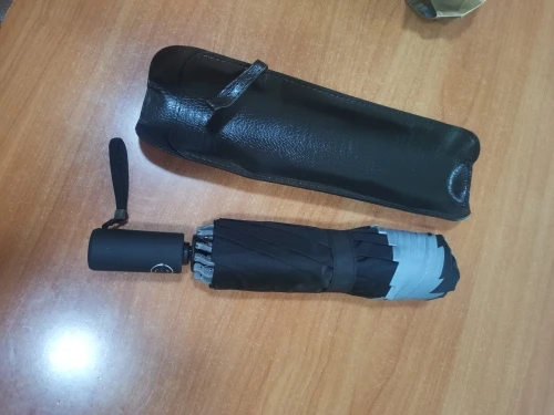 интересный зонтик, спицы пластиковые, закрывается мокрым во внутрь, это очень удобно, щаходишь в подьезд или в машину и руки сухие при трогании зонта, очень удобно, рекомендую. чехол конечно мужской, под кожу. сам зонтик унисекс.
