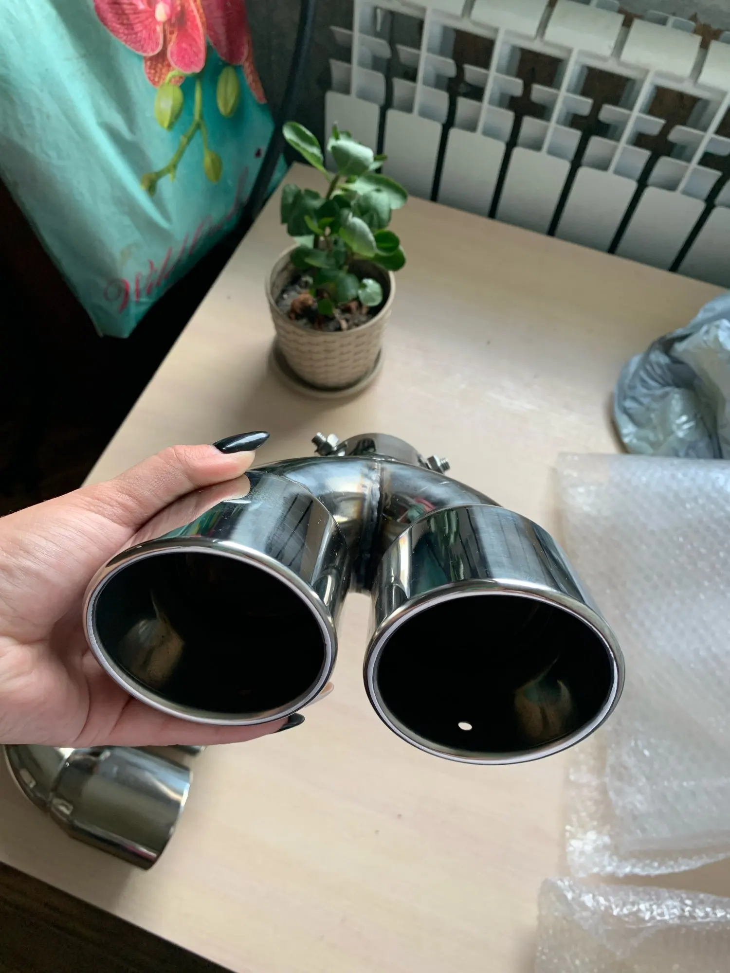 Автомобильная выхлопная труба, универсальная двойная розетка, автомобильный глушитель, наконечник из нержавеющей стали, хромированная отделка, Модифицированная Хвостовая горловина, труба 63 мм