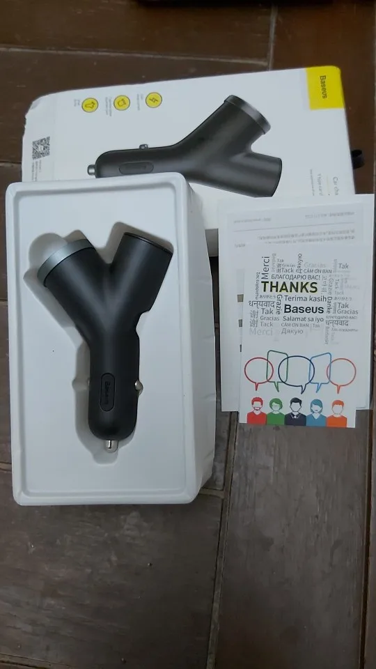 Пришло достаточно быстро - 3-4 недели :-) Коробка помятая, но внутри все ок. Зарядка функционирует нормально - и усб и прикуриватель. из гнезда при тряске не вываливается.