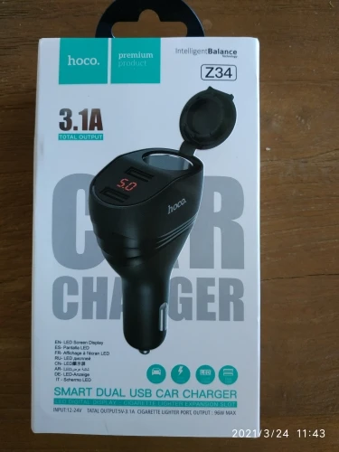 Автомобильное зарядное устройство HOCO с двумя портами USB + разъем для прикуривателя со светодиодным дисплеем, 96 Вт, 3,1 А, адаптер для быстрой з...