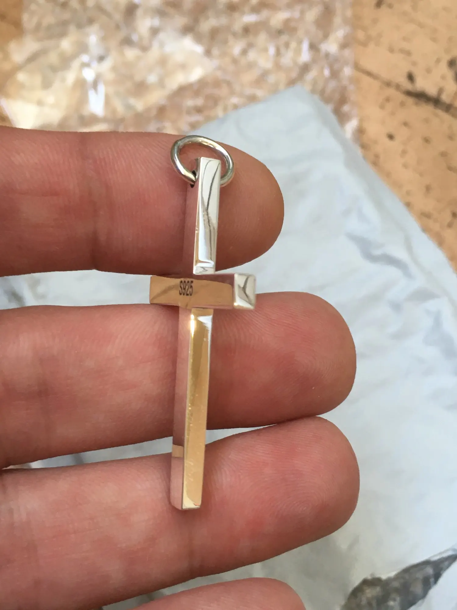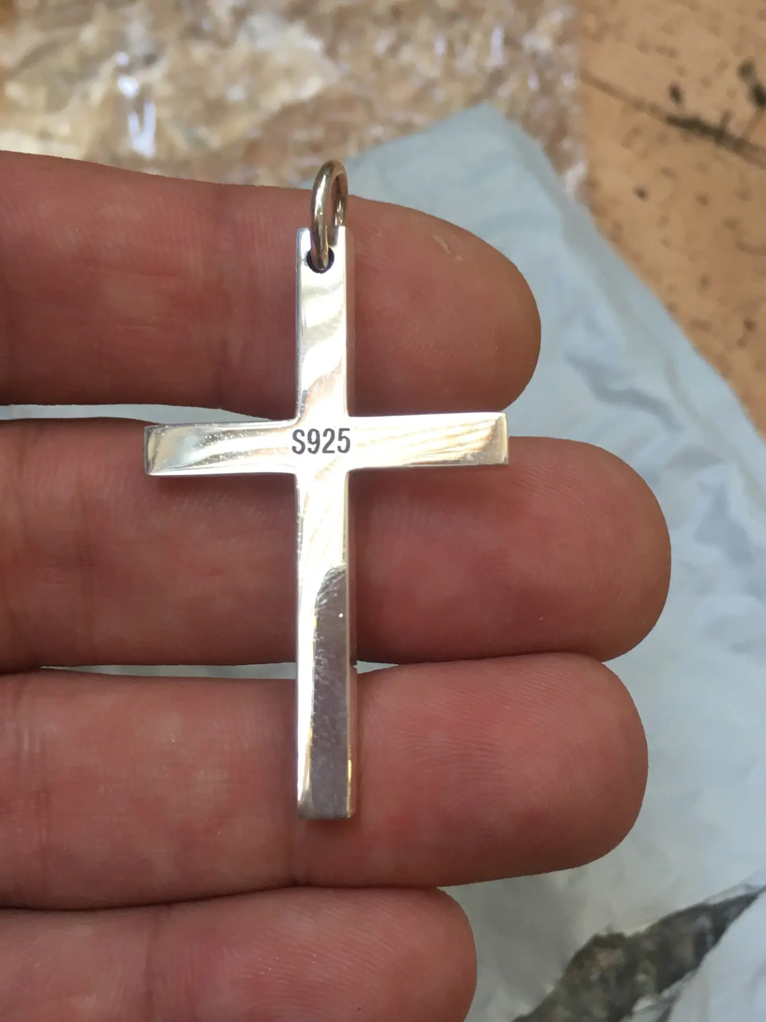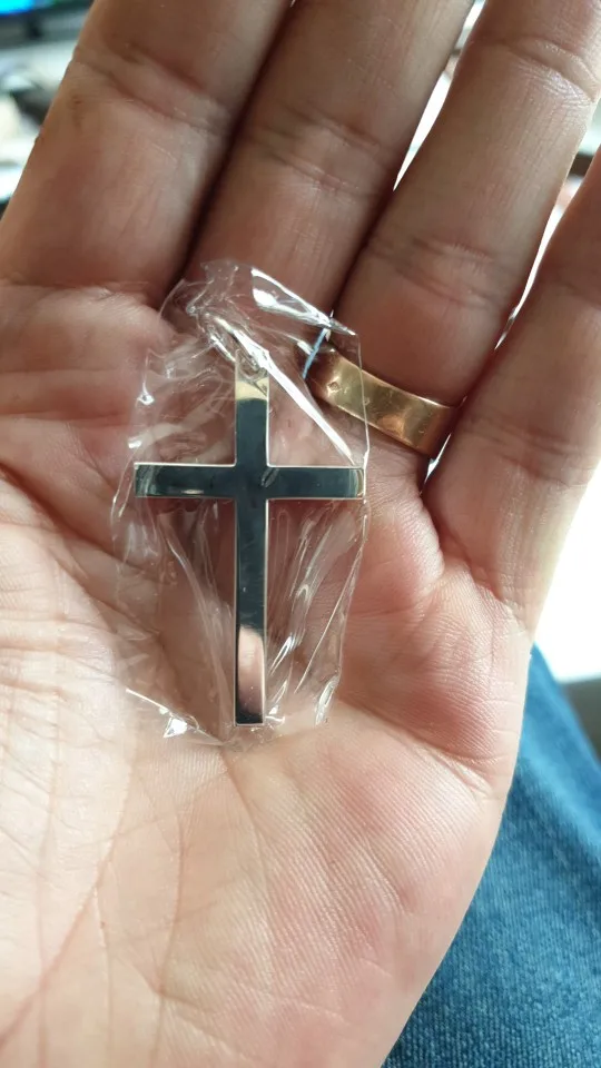 вещь красивая. крест весит 11гр. в ушко прошла цепочка 5мм. упаковка в пупырку (некрасиво).