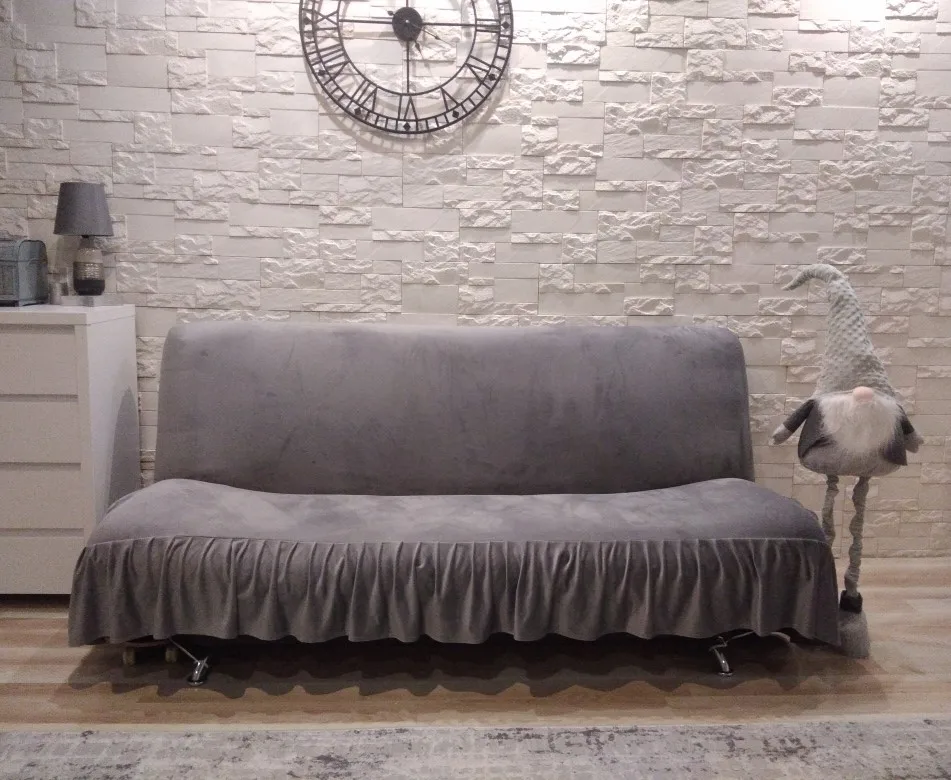 Бархатный Чехол для дивана, однотонный эластичный чехол с краями юбки, без подлокотника, цвет золотой норка