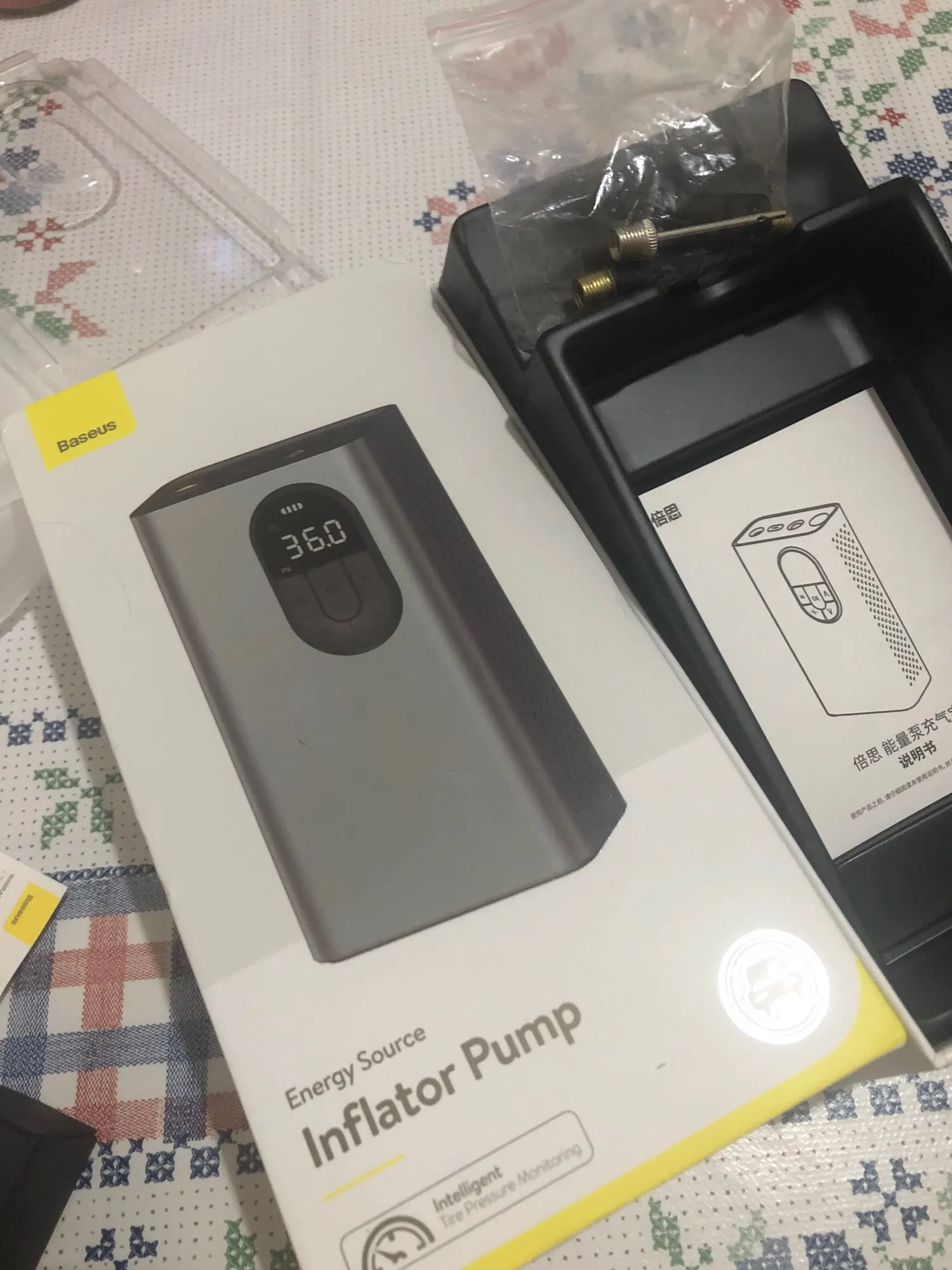 Возникли сложности с доставкой. Примерно неделю в статусе было - доставлено в пункт выдачи. Где этот самый пункт выдачи продавец подсказать не мог. Пришлось обойти близлежащие почты, сдеки прочие дпд. В итоге в одном из них обнаружилась посылка на мое имя. Сам девайс выглядит достаточно качественно. Упаковка отличная. 18 колеса качает со скоростью 0,05 бар за 20 секунд. Нужно подобрать правильную зарядку. При первой попытке зарядить он всю ночь что-то там заряжал, но к утру было только 2 деления из 4. Сменил зарядный блок и все дозарядилось быстро. Шумит сильно.