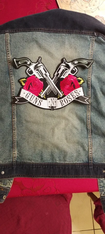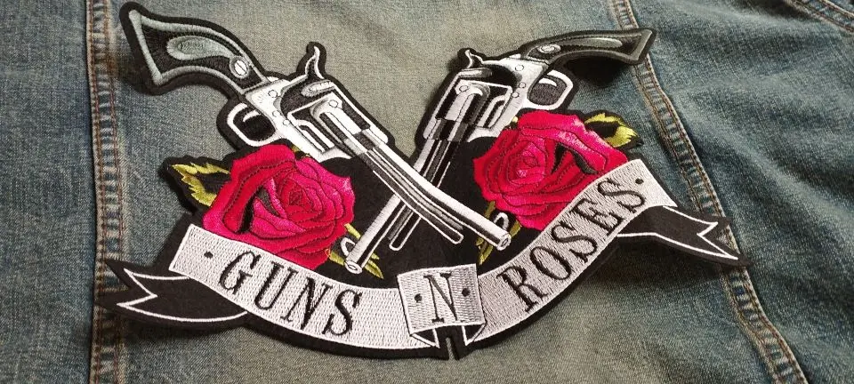 Байкерские нашивки в стиле панк с двумя пистолетами, розами и черепами, нашивки с вышивкой, одежда, куртка с вышивкой, рюкзак для мотоцикла, большие нашивки