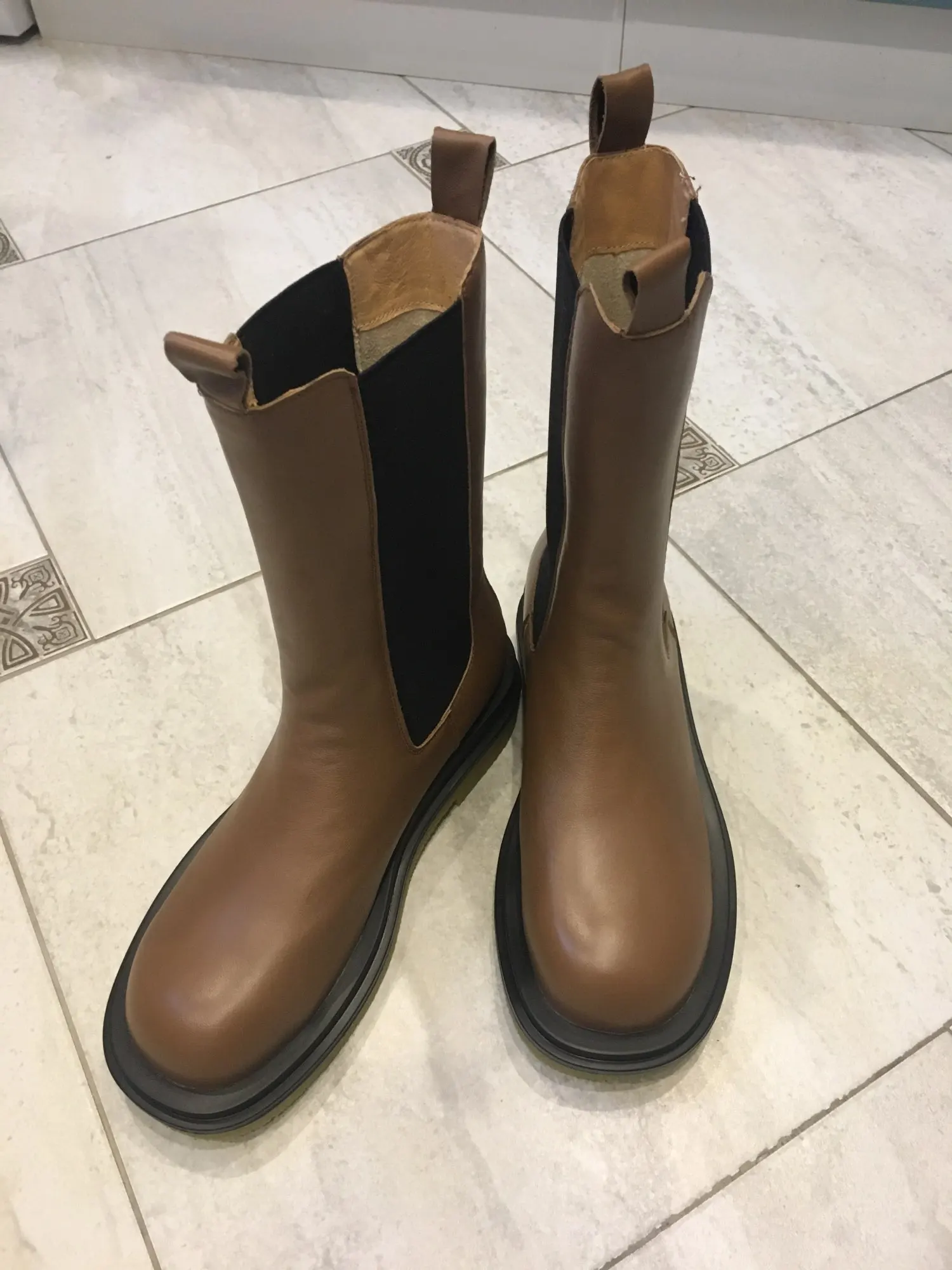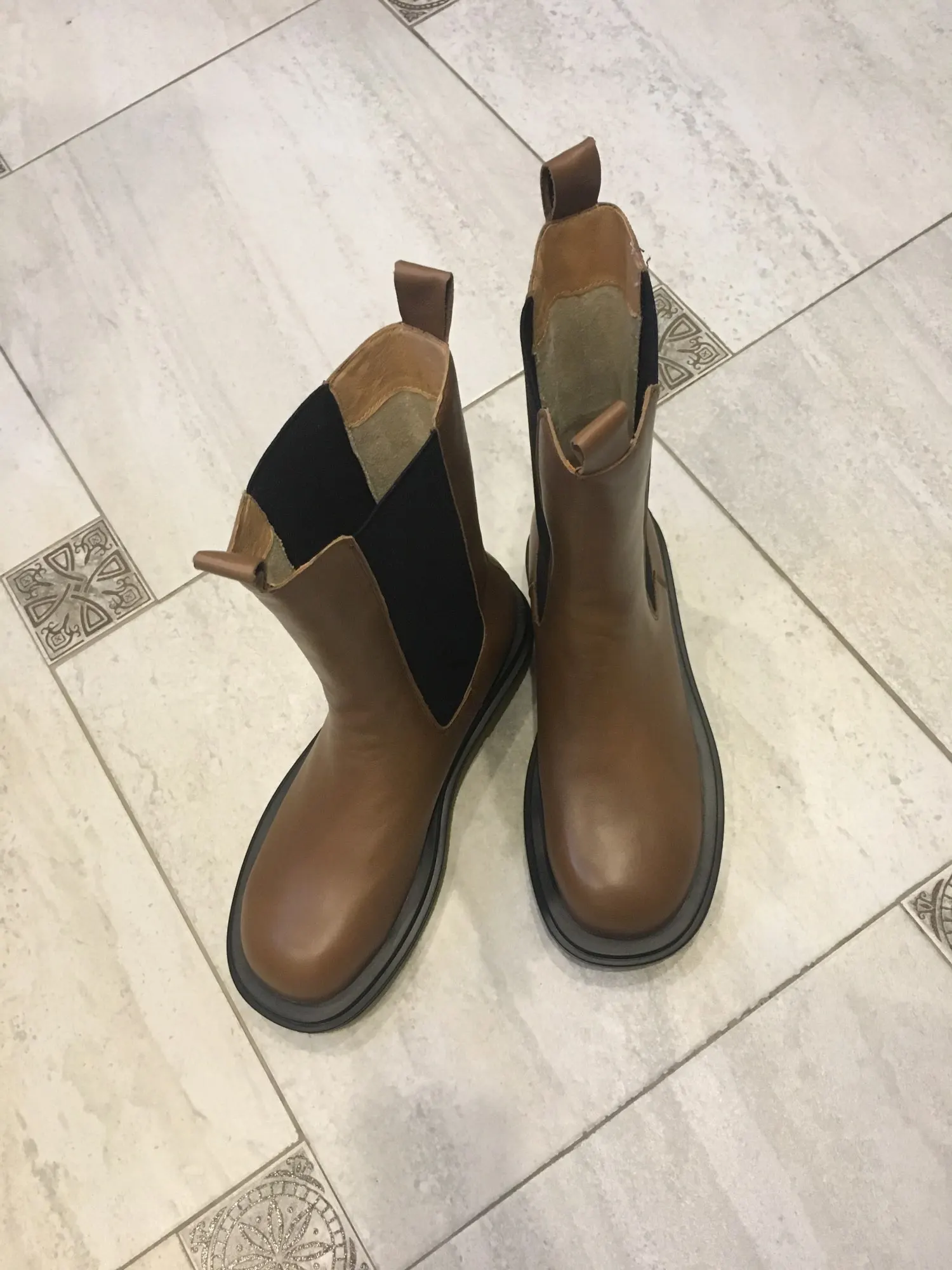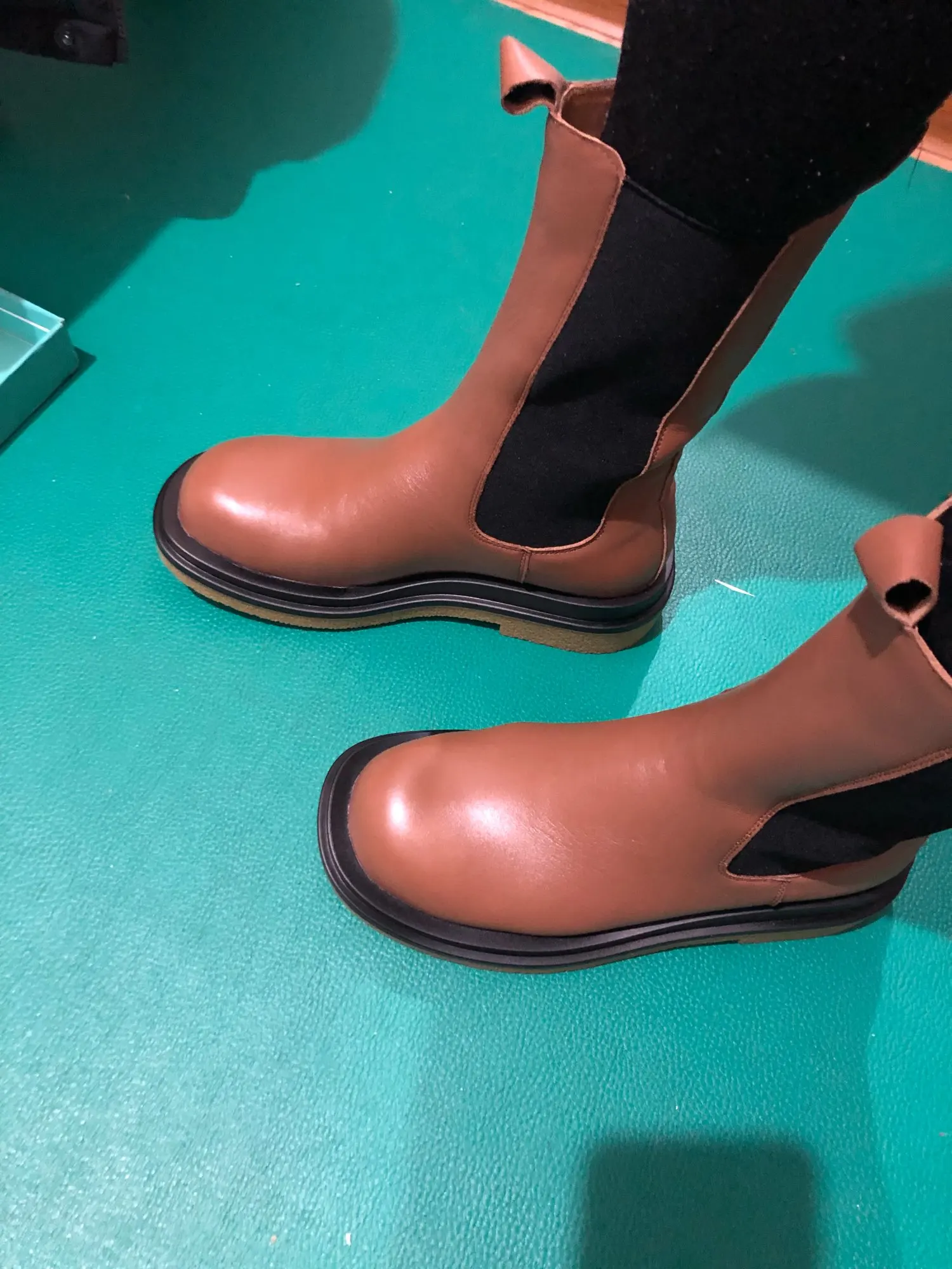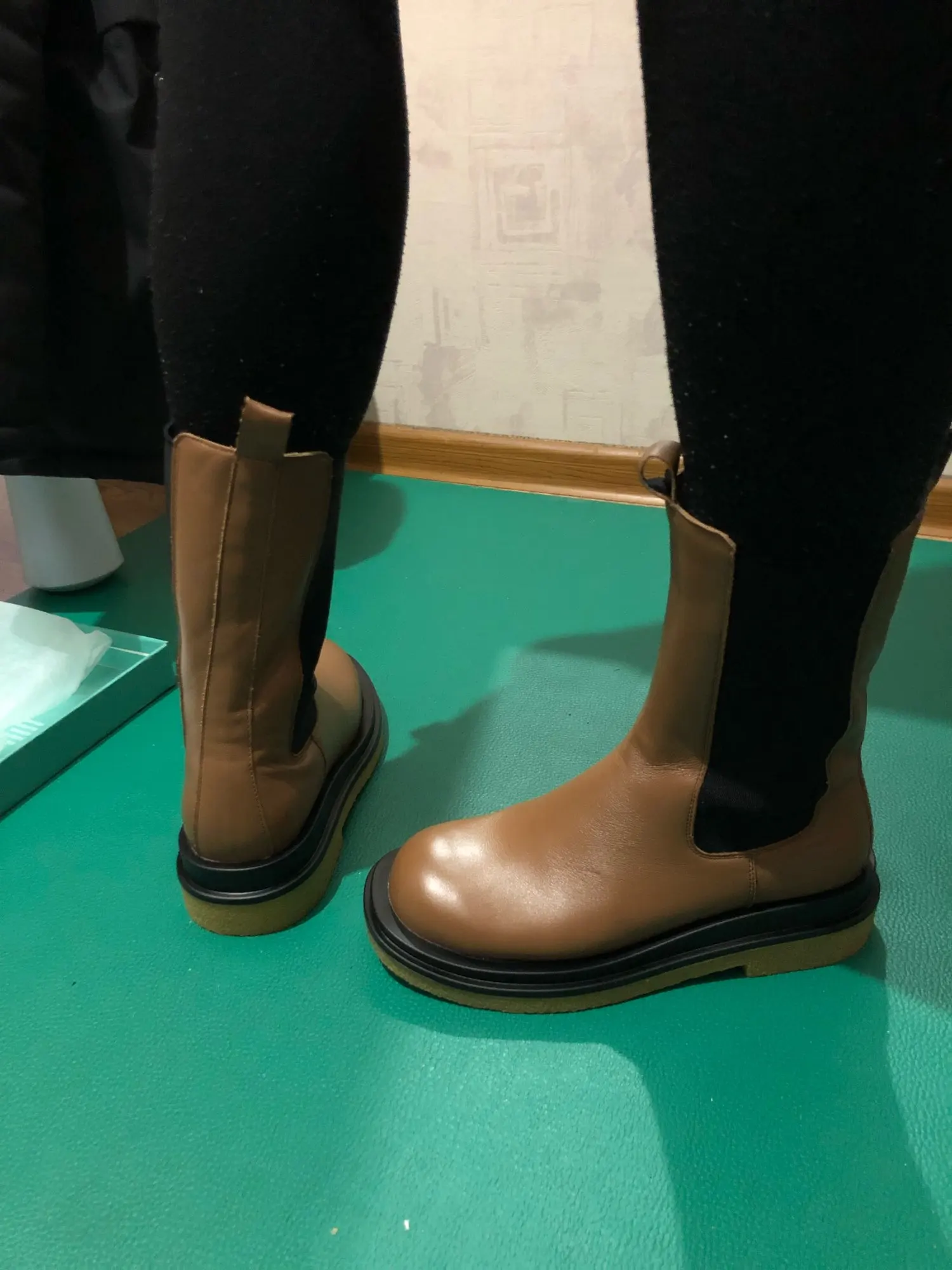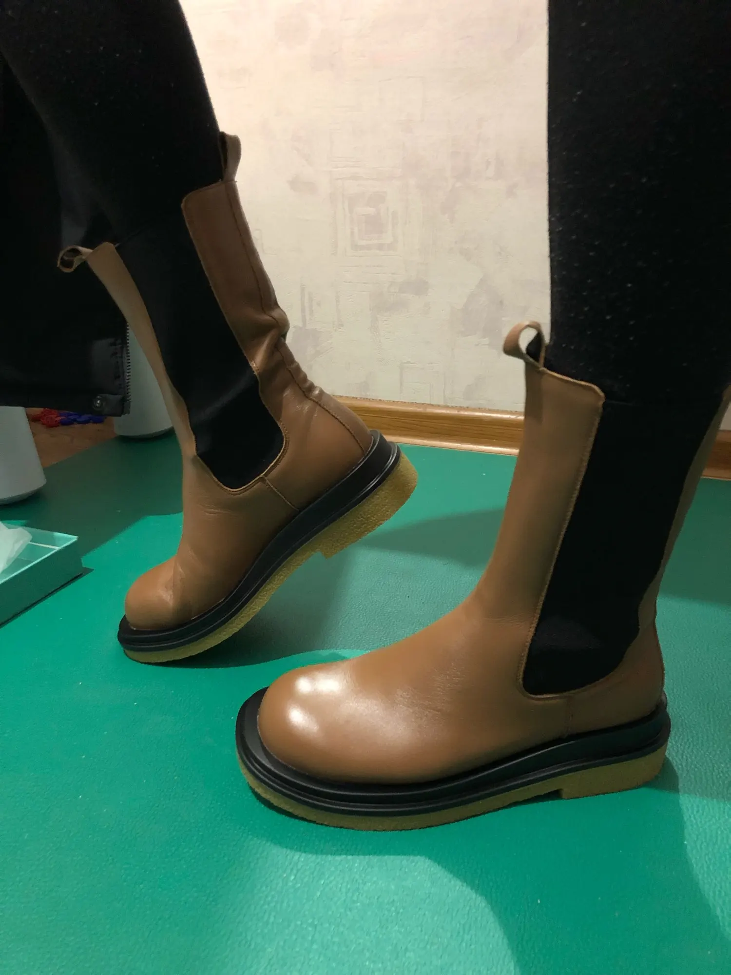 пришли в фирменной коробке, которая слегка пострадала при транспортировке, завернуты в мешочки, внутри пенопласт , чтобы носок держал форму. сильный запах клея при распаковке. швы не на 5, кое где неровные, есть мелкие следы клея и разрезы кожи на стыке с подошвой. заказала сначала 6 размер, потом попросила продавца поменять на 7, и не прогадала. моя стопа 23, но в холодную пору ношу носок и это 23,5. материал похож на кожу. в целом покупкой довольна, в магазинах такой фасон и за такую сумму не встречала.
