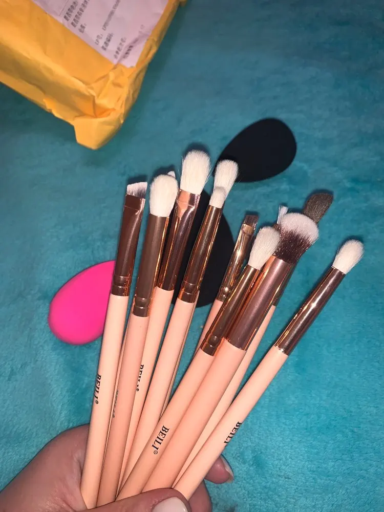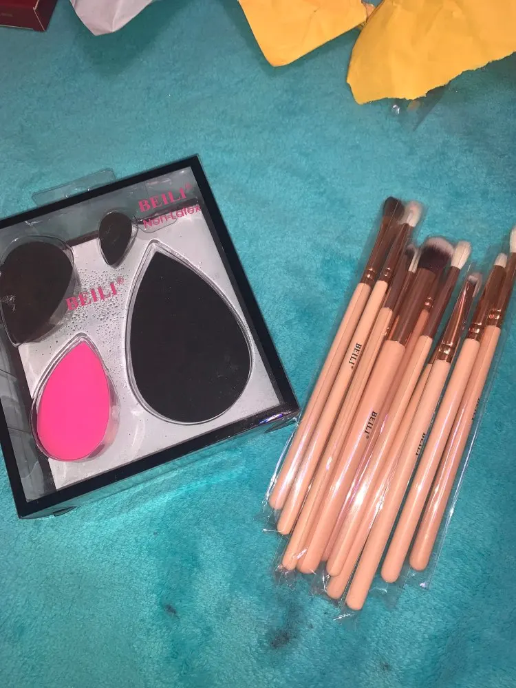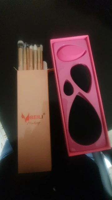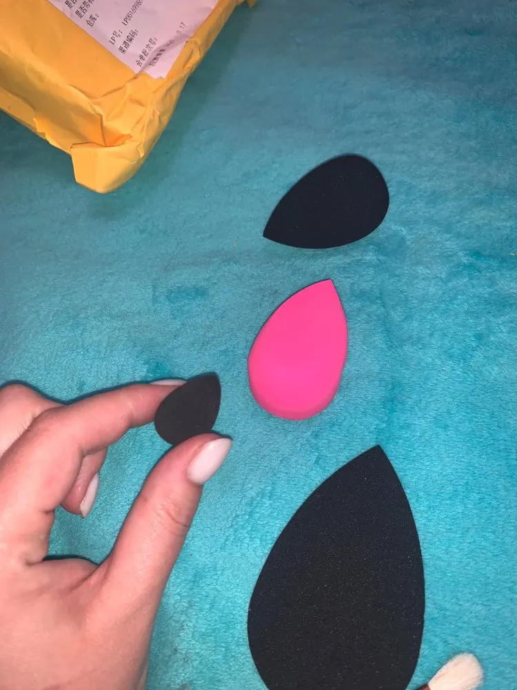 Кисти хорошие, попалась одна немного колючая. Спонжи тоже хорошие, черный показался странным на ощупь и при намокании и последующей сушке принимает странные формы, будто в его родословной затесался магнитный пластилин, но работает хорошо, почти не впитывает продукт и хорошо распределяет тон по лицу.