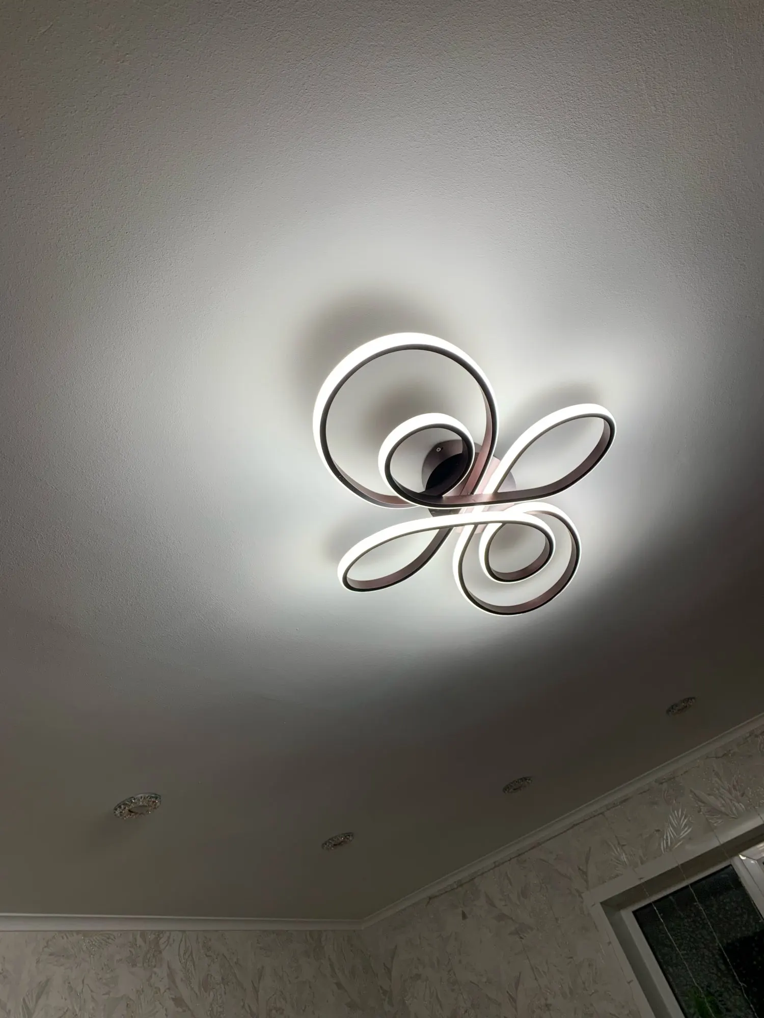 Люстра работает. Пульт уже был привязан. Шла долго. По моему цена завышена