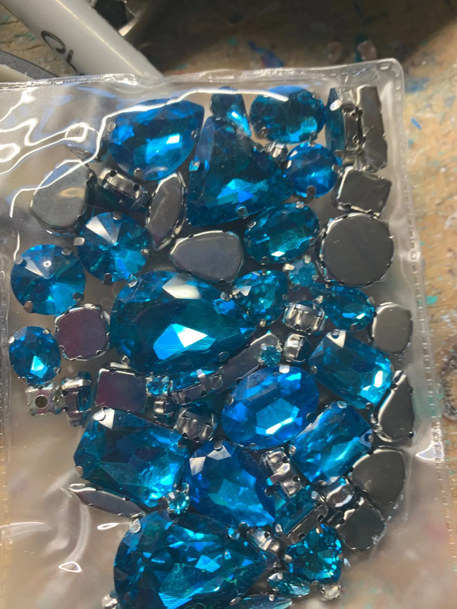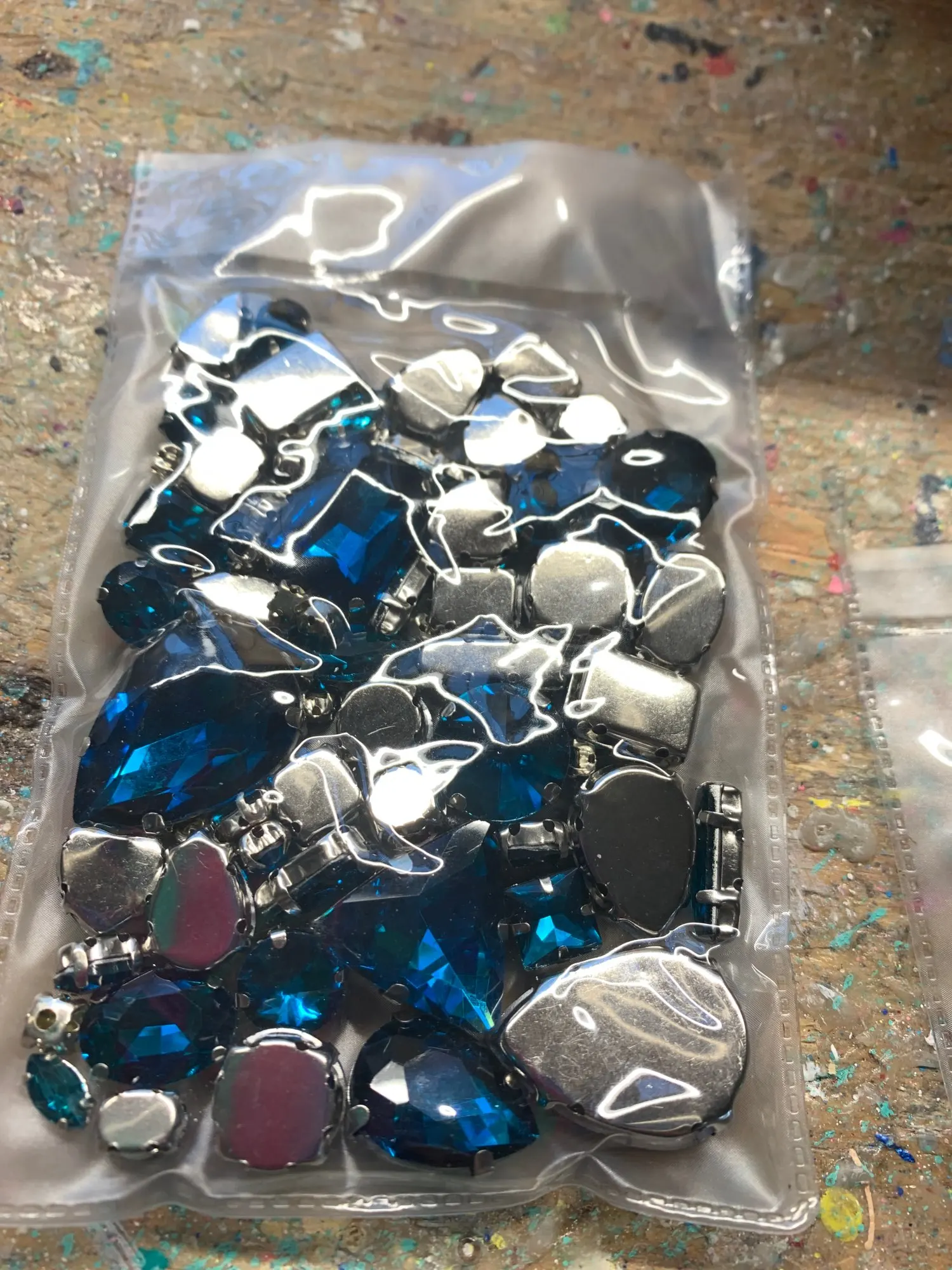 Бесплатная доставка, 10 форм, 25 Риз, 58 шт. Стеклянные хрустальные стразы разных размеров смешанной формы с серебристыми крапанами для шитья с...