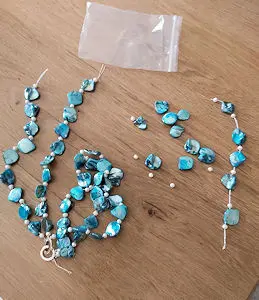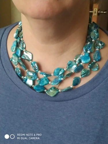 товар пришел очень быстро. я очень сомневаюсь на счёт жемчуга. возможно между синими камнями и есть жемчуг мелкий. на этом всё. скорее всего это как ни с напылением.