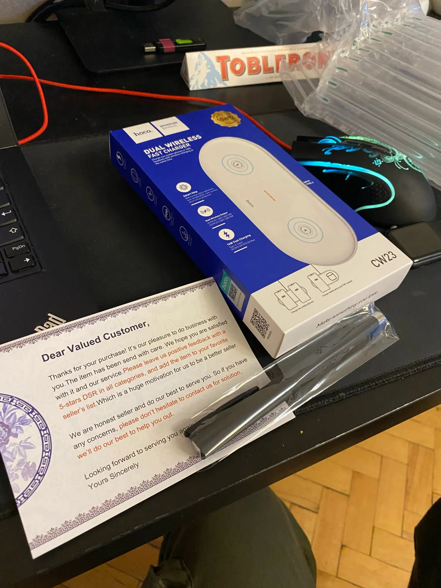 зарядка отличная, пришла в Украину меньше чем за 2 недели. качество нормальное. в подарок положили ручку(приятно)