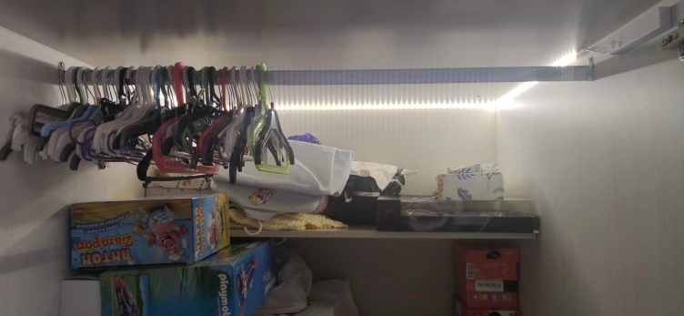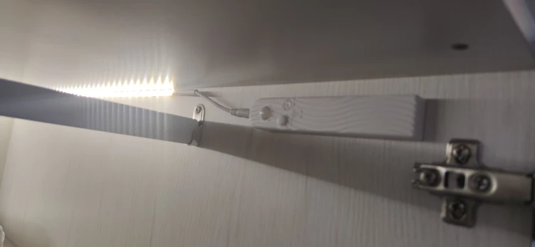Отличная подсветка! Достаточно, чтобы пользоваться санузлом, не включая свет. Датчик движения работает хорошо: реагирует на открывание двери, это метра полтора от датчика. Клеящая поверхность ленты не очень хорошая, но и ленточка ведь легкая. Пока держится, если будет отваливаться - заменим на двусторонний скотч, не проблема. Очень довольны покупкой, будем покупать такую в шкаф.