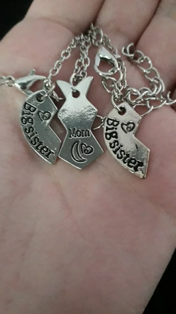 Заказала с надписью про сестёр 3 подвески, очень качественно упаковано, выглядит аккуратно. Боялась заказывать думала будет наподобие пластика, но на деле это металлические подвески. С чёткими надписями, без затёков. Спасибо, осталась очень довольна.