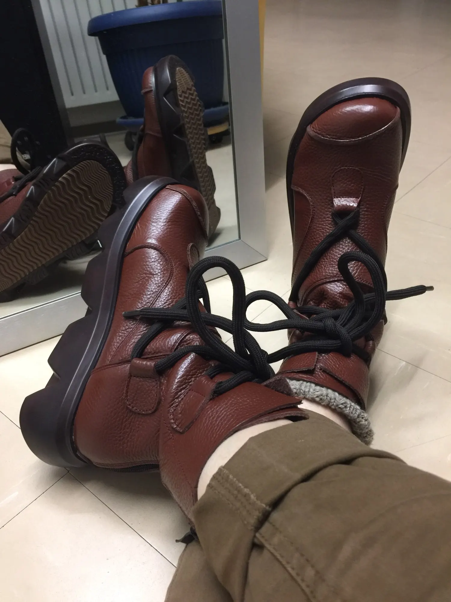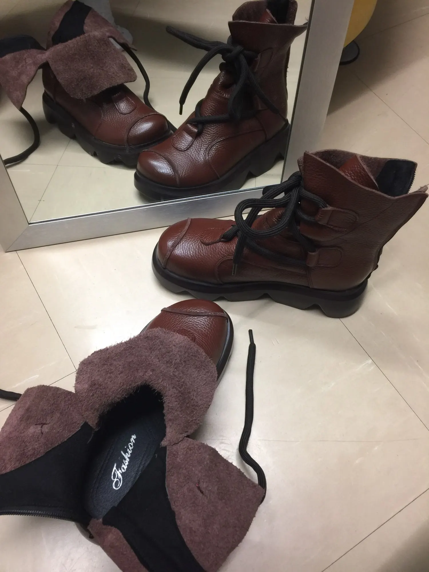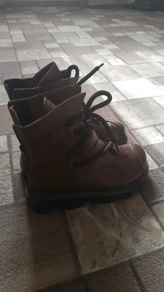 BEYARNEWomen's воловья кожа сапоги первый слой xifairy g повседневная обувь высокие ковбойские сапоги из натуральной кожи круглый носок шнуровка плат...