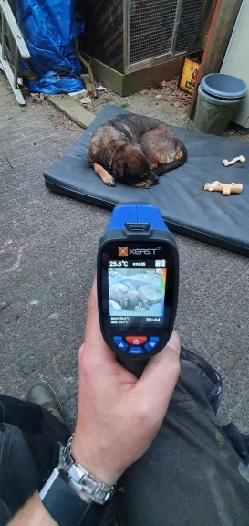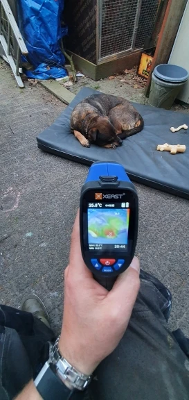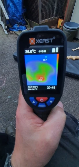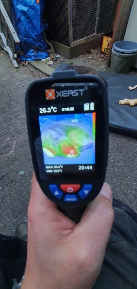 это чтото среднее между пирометром и тепловизором. он показывает картинку + дополнительно обозначает на экране маркером точную температуру в конкретной точке, и эти маркеры с переодичностю в 2-3 сек меняют место по объекту На самом деле оч удобно, т.к. на других тепловизорах температуру обычно определять по температурной шкале приходится, а тут прям на экране в конкретной точке само обозначет температуру Не сразу разобрался как батарейки вставить, походу на крышке обозначение + и - не верно сделано