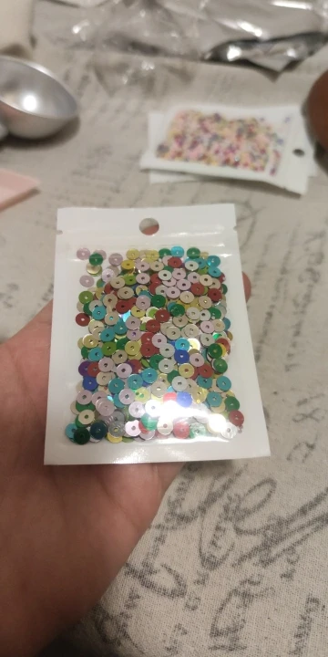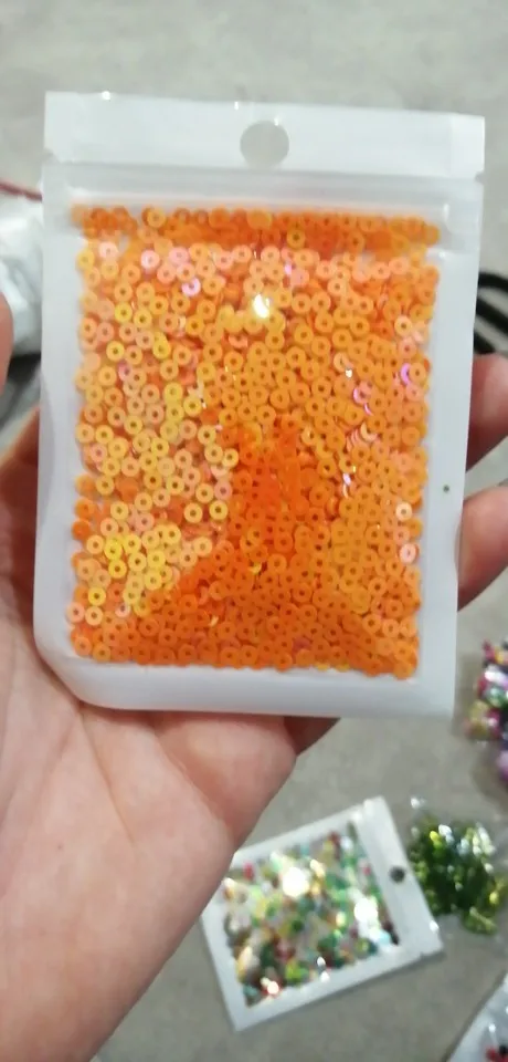 Пайетки отличные! Ничего не стирается, брака почти нет. 3мм оооочень маленькие. Спасибо огромное продавцу❤