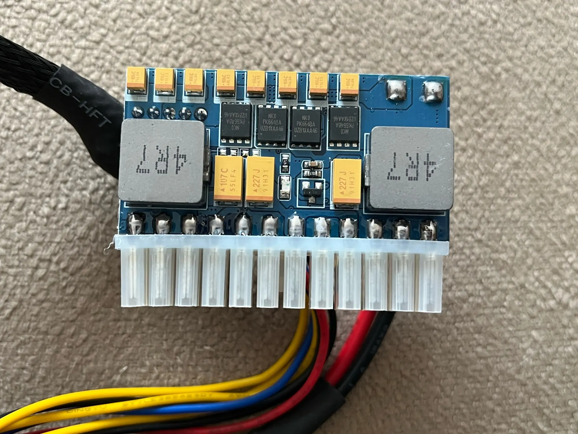 Товар пришел нерабойчий. По 12 вольтовой линии просаживается уже при 2 амперах. Пришлось выпайивать выходные мосфеты и на выход подавать 12 вольт со входа. Благо входное тоже 12 вольт.