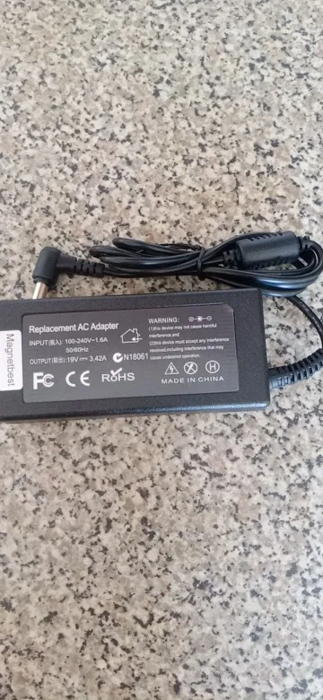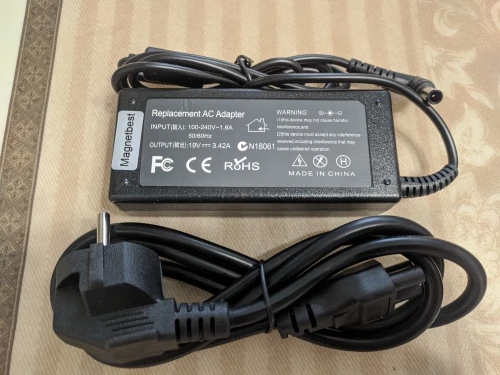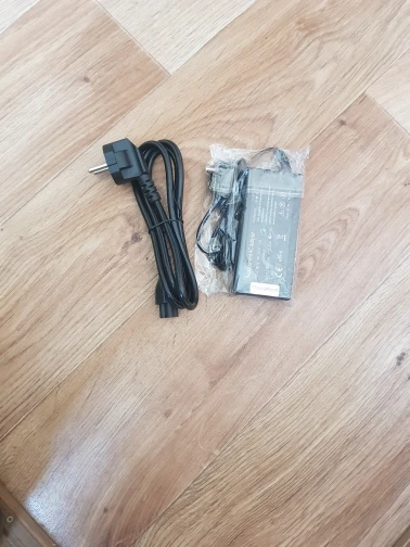 пришла очень быстро, ситевого шнура нету, надо внимательней читать описание). адаптером доволен)