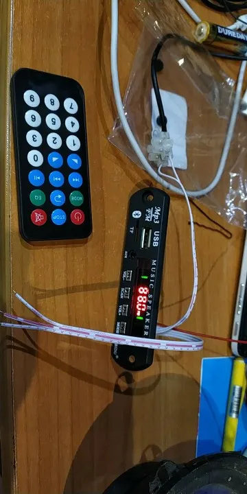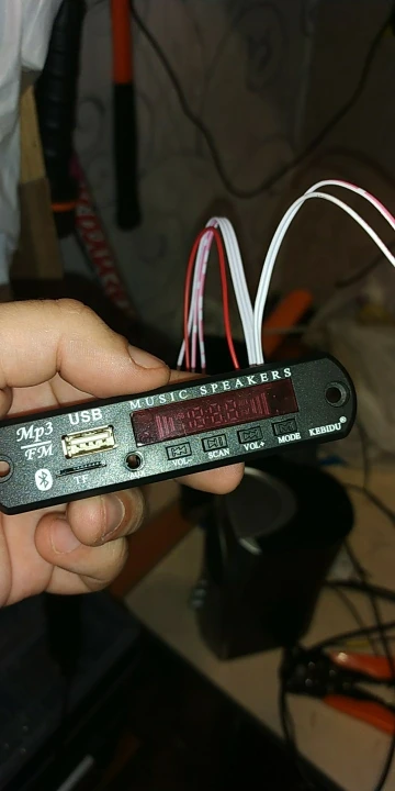 3 недели до СПб. Упакован слабо, счастье что ничего не пострадало. Питается 5-12 В, выше не проверял. Большой минус - звук только МОНО. Проверял MP3, блютуз, AUX вообще прямо на плате соединены каналы. Хотя в описании нигде и не сказано ничего про стерео, молодцы... (На картинках плата другая, там видно, что стерео) Громкость радио существенно выше, чем других источников, может заорать при включении. Чувствительность так себе. При втыкании флешки сразу само начинает проигрывать последний файл. Позицию помнит, но не всегда. При переключении режимов никаких звуков нет. По блютузу работают кнопки вперёд/назад/пауза. Пульт без батарейки (CR2025), так что не проверил пока.