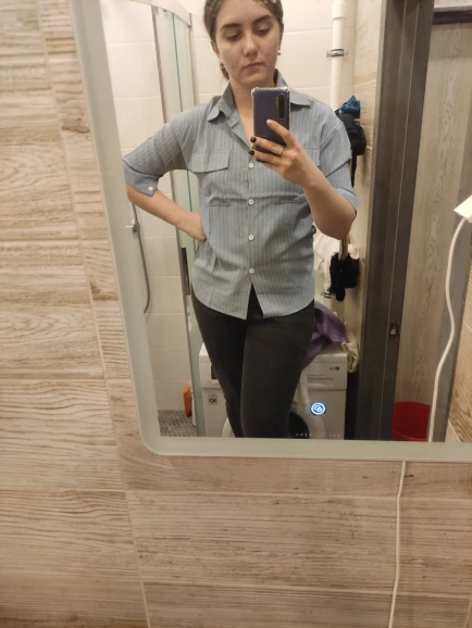 Не для барышень с пышной грудью. придется перешиваьь пуговицы. на ройссский размер 44 не оверчайз, а по размеру и даже маловато. Но продавец положил в подарок резиночку, за что ему спасибо. посылка отслеживалась. немного расстроили нитки, неаккуратность прорезей для пуговиц. второй раз заказывать не буду
