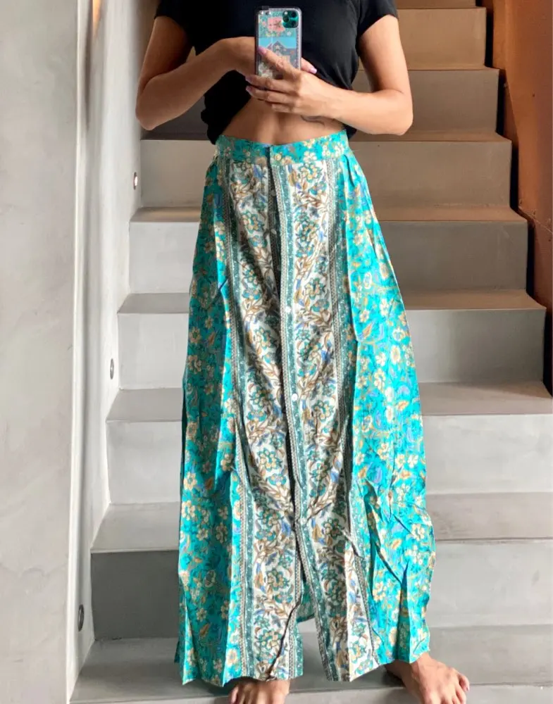 Бохо Шик Женская летняя пляжная юбка хиппи сетчатая строчка Милая Цветочная печатная богемная длинная Макси юбка женская оверсайз