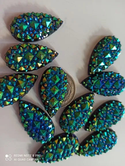 BOLIAO 10 шт. 16*30 мм (0,63*1,18 дюйма) AB Кристальные капли Темно-Синие стразы с плоской задней стороной смолы пришить на одежду/домашние праздничные у...