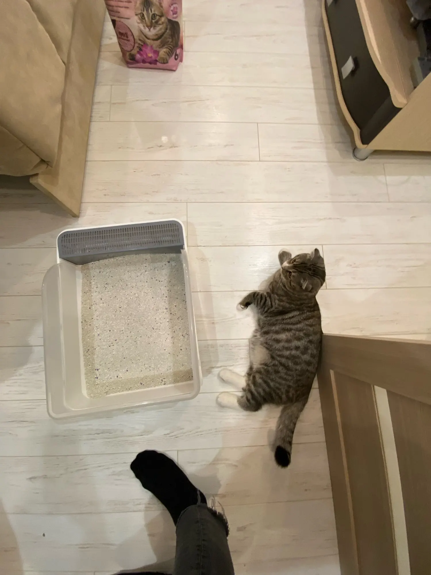 Лоток хороший и вместительный. Взяла для 2-х кошек. Есть небольшой скол, но не критично.