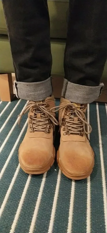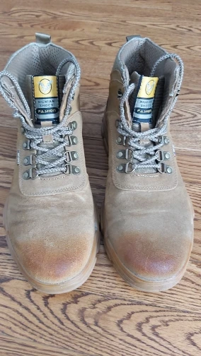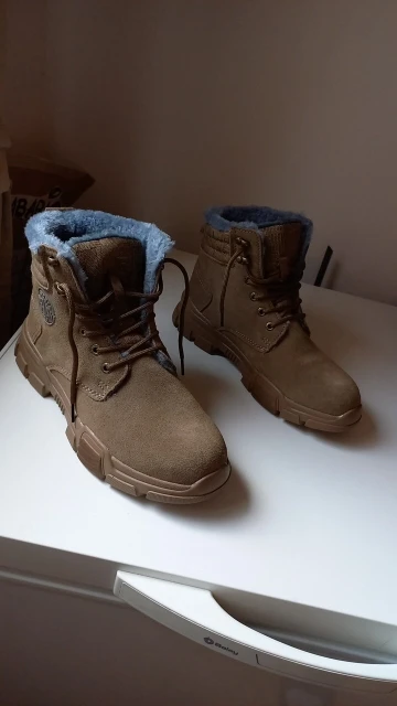 Заказывала по размерной сетке, на 2 больше, чем привычно. Отслеживались, очень долго шли по Китаю, но по месту дошло быстро. При распаковке был очень сильный запах клея, но ботинки из кожи. Брала мужу на работу, чтобы носок был железным. Тяжелые. Отличное соотношение цены и качества