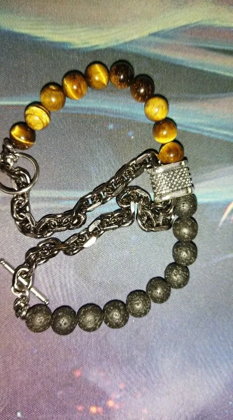 yellow tiger eye + volcanic stone