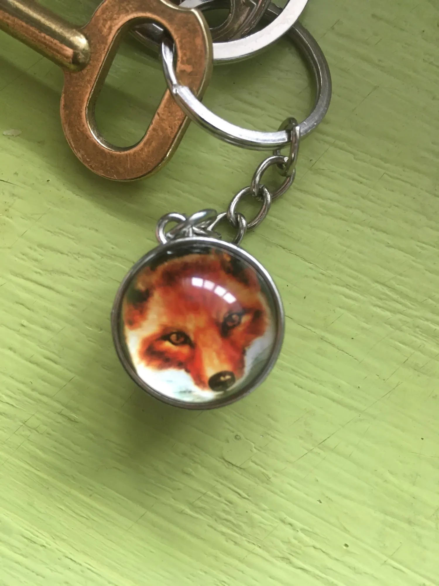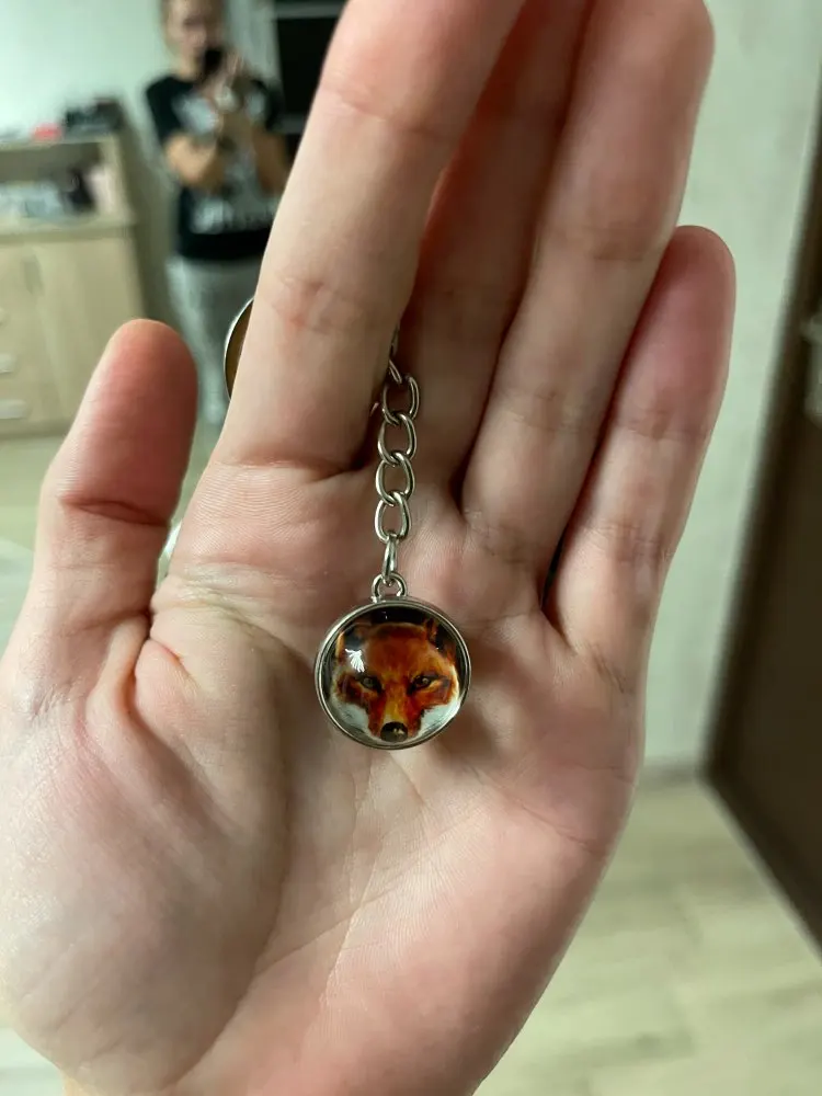 Брелок имеет небольшие потёртости, но в целом все хорошо, лисичка на рисунке яркая, изображение четкое