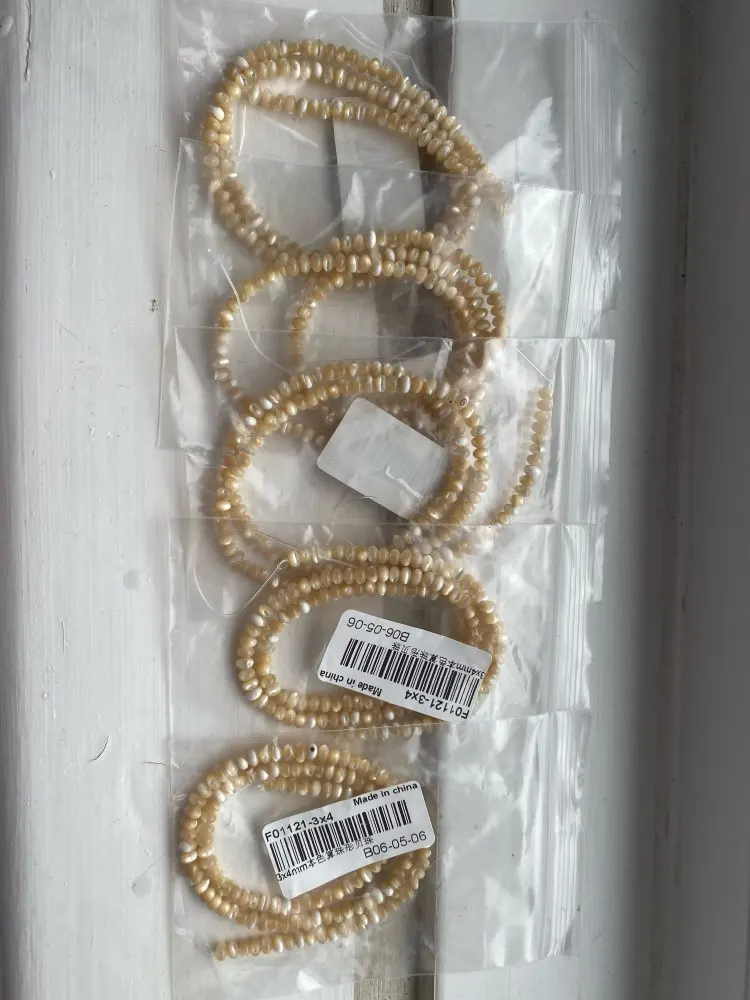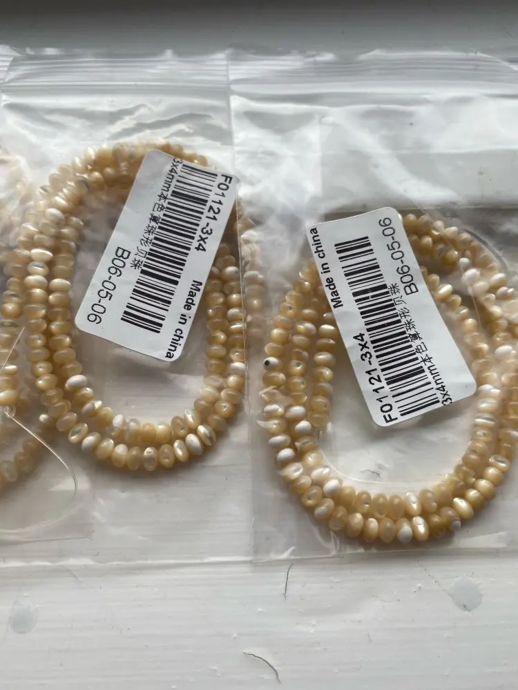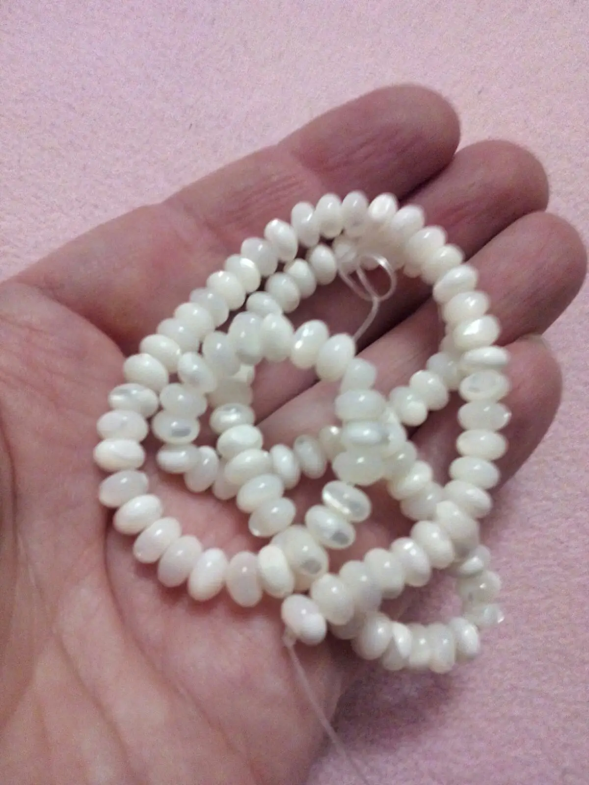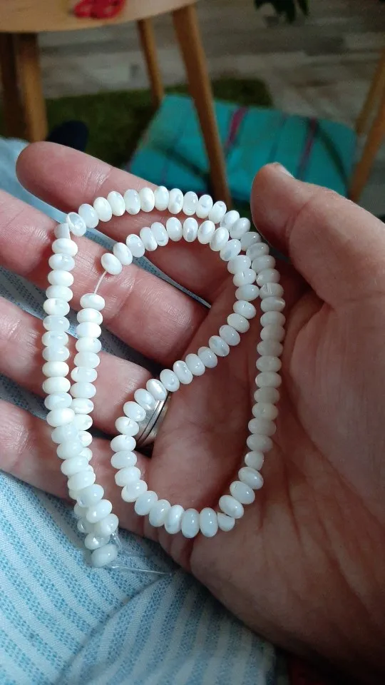 Очень красивые перламутровые рондели. Цвет - немного кремовый. Описанию, размеру, длине соответствуют.