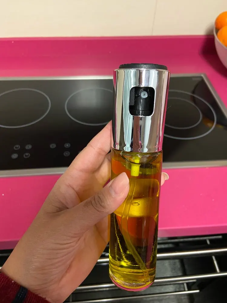 брызгает струёй, на сковороде все равно приходится размазывать. думала будет более как спрей. и выглядит стремно. по фото непонятно что черный квадрат на верхней части это дыра, головка спрея посреди дыры утоплена.