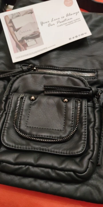 Моя первая сумка не из кожи за последние лет 8. Уж очень понравилась модель, поэтому купила. Она обалденная. Куча кармашков, стильно смотрится. Цвет в зависимости от освещения кажется то светлее, то темнее, то с ноткой коричневого. Носить буду через плечо, но возможно иногда и рюкзаком для разнообразия. Большая, но не безобразная. Надеюсь будет удобной. Доставка 2 недели. Большое спасибо.