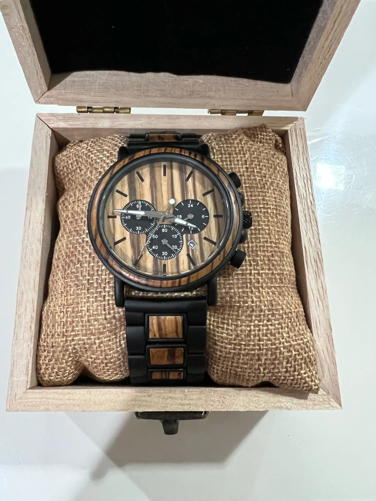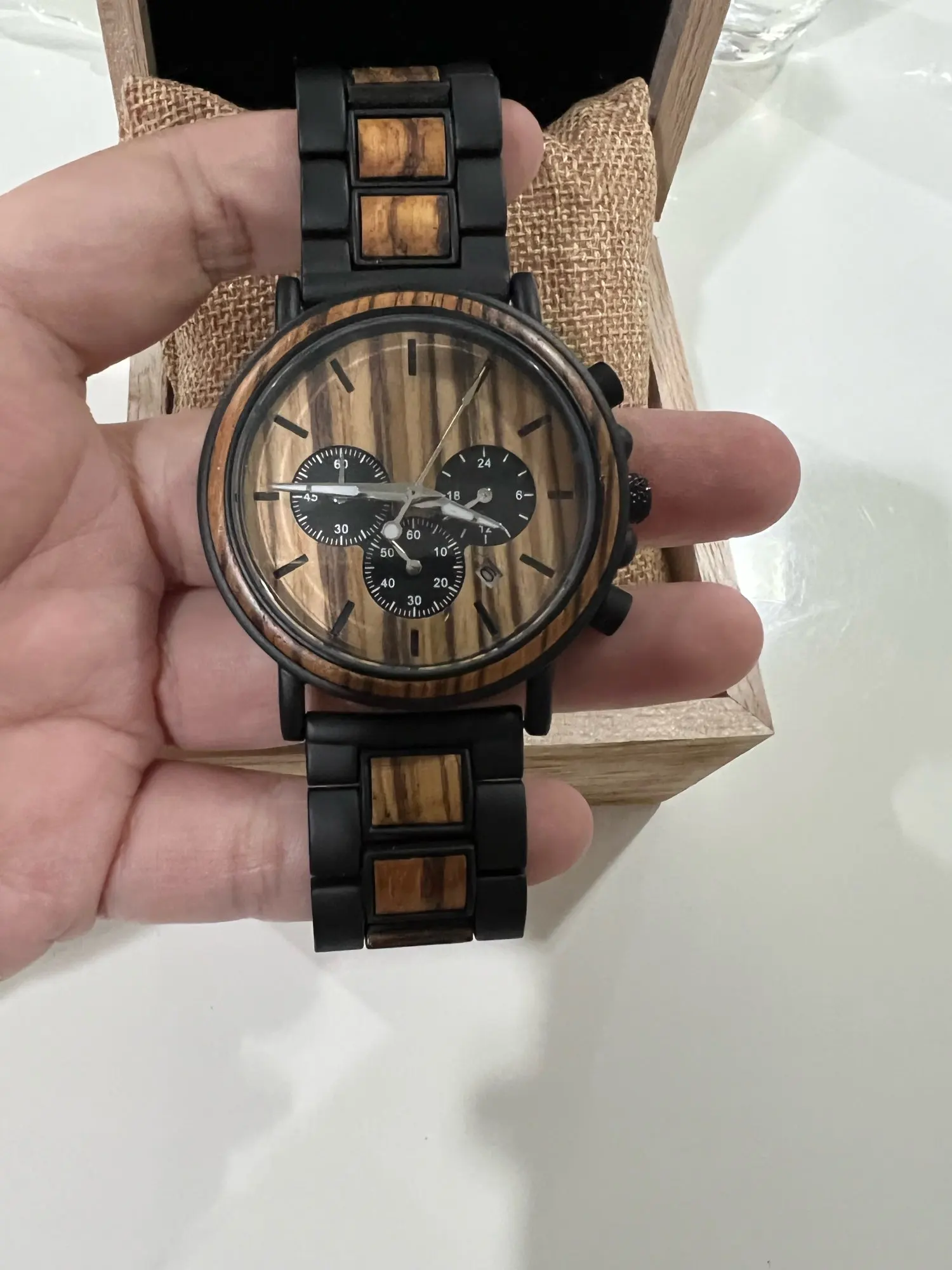 Часы мужские деревянные с хронографом, отображением даты и секундомером
