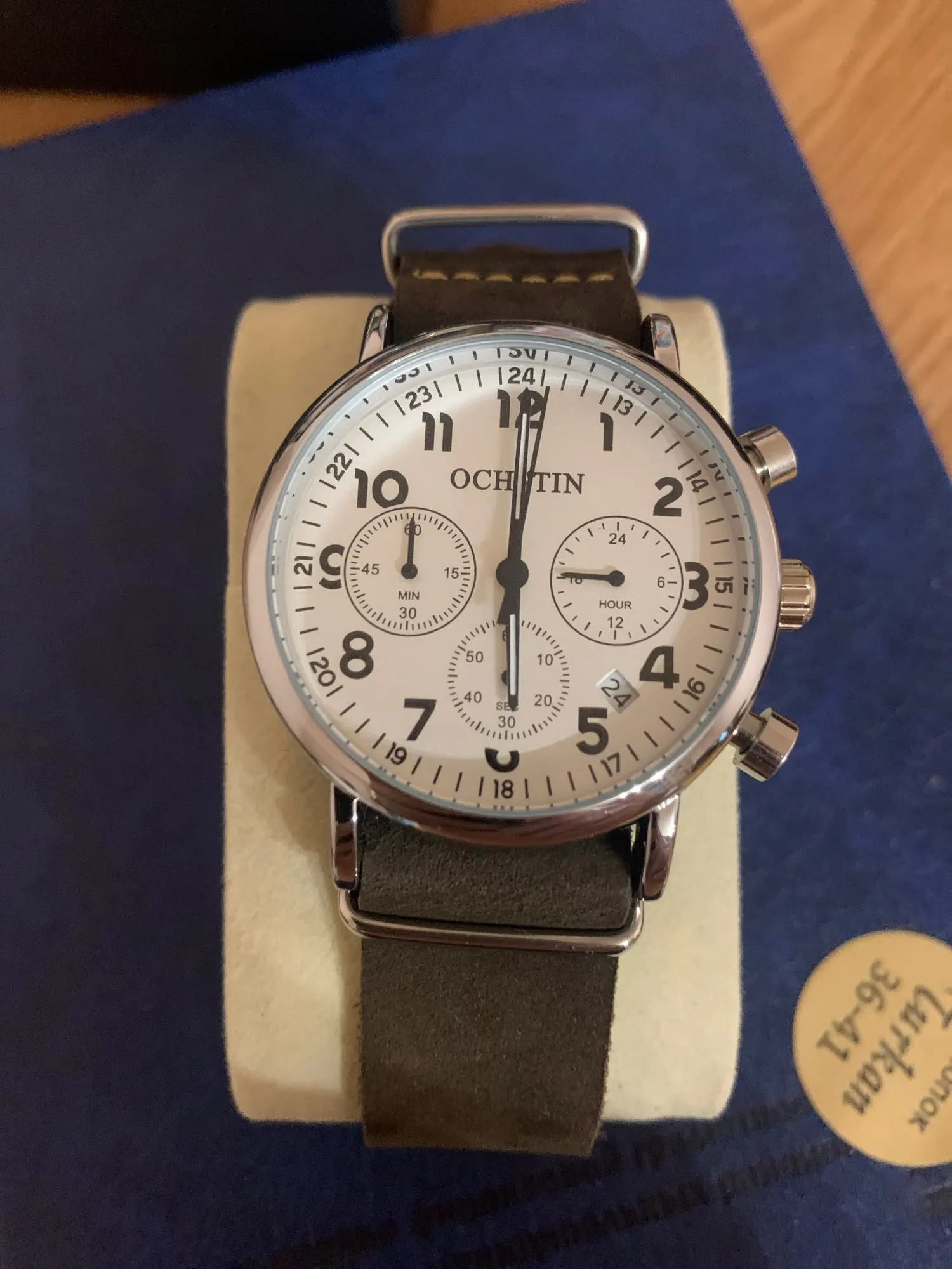 часы пришли быстро. выглядят отлично. Только ремешок маловат, для большой руки, у меня на последнюю дырку только можно зацепить.