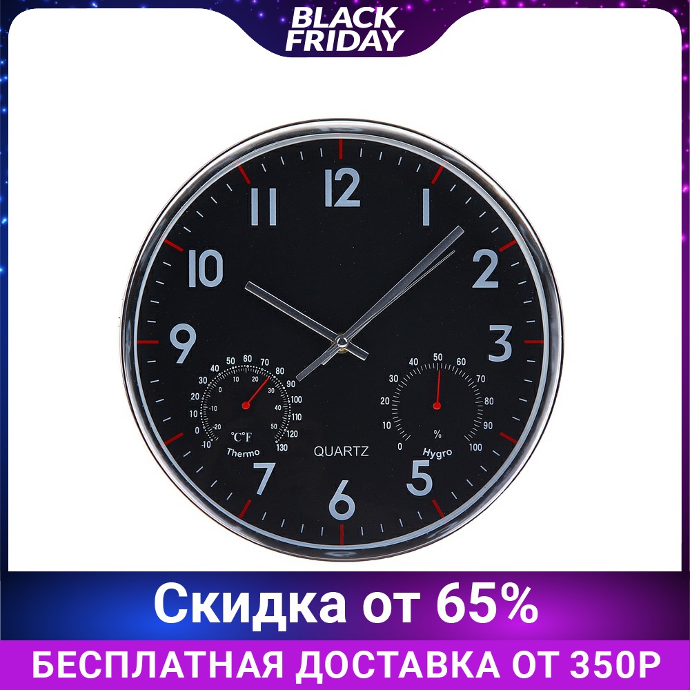 Часы настенные, серия: Классика, "Остин", с термометром и гигрометром, d=30 см, плавный ход 1104365