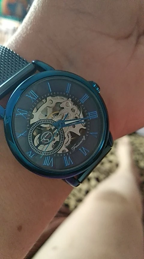 Часы-скелетоны FORSINING женские механические, брендовые люксовые Простые повседневные наручные, синие, 2022