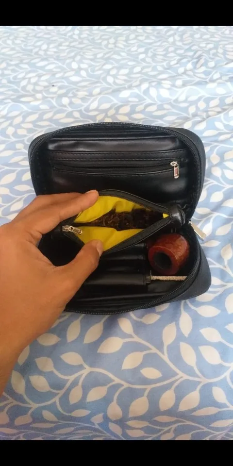 Хорошая, удобная сумка. Кожзам имеет несильный запах с нова, но он быстро выветривается. Сшито аккуратно и добротно. Две трубки с прибамбасами на ура. Мешок для табака не использую.