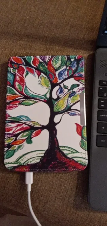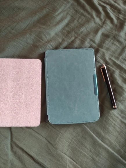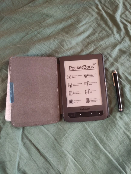 обложка подошла очень хорошо на покетбук Basic 3. 614 модель. идеально. цвет не очень понравился - более тёмный, больше красный, чем розовый. магнит хорошо закрывает.
