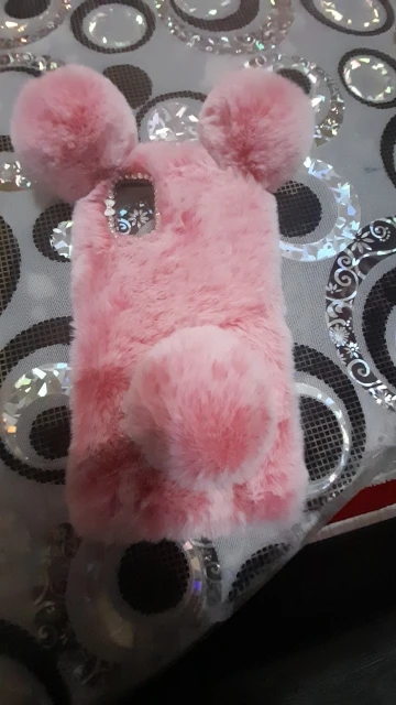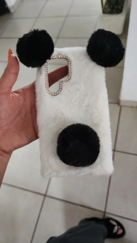 3D Panda Ears Cute Fur Plush Furry Phone Case For Samsung Galaxy Cover
