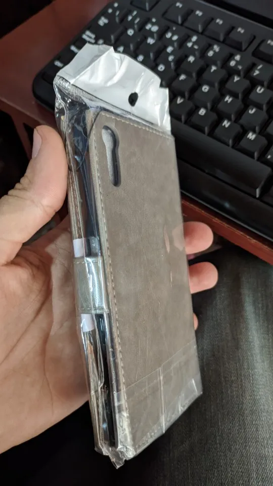 Чехол отличный.Строчки ровные, запаха нет. На телефон сел отлично! Доставка чуть меньше месяца.
