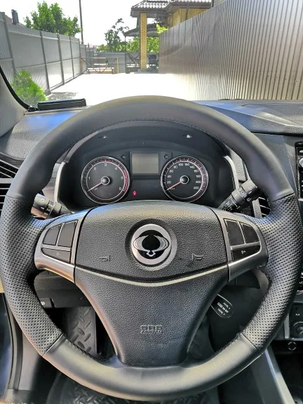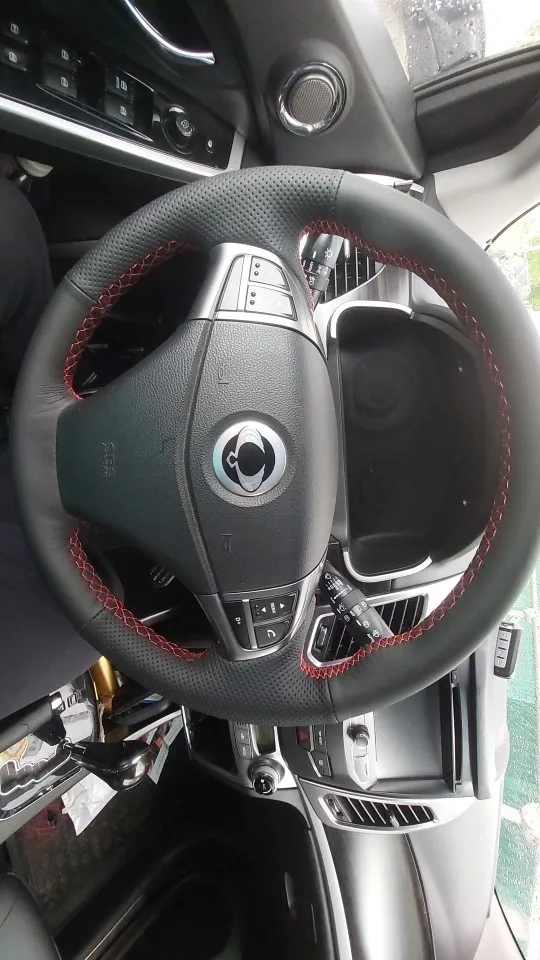 Чехол рулевого колеса автомобиля DIY сшитая вручную черная искусственная кожа для Ssangyong Korando 2010-2022