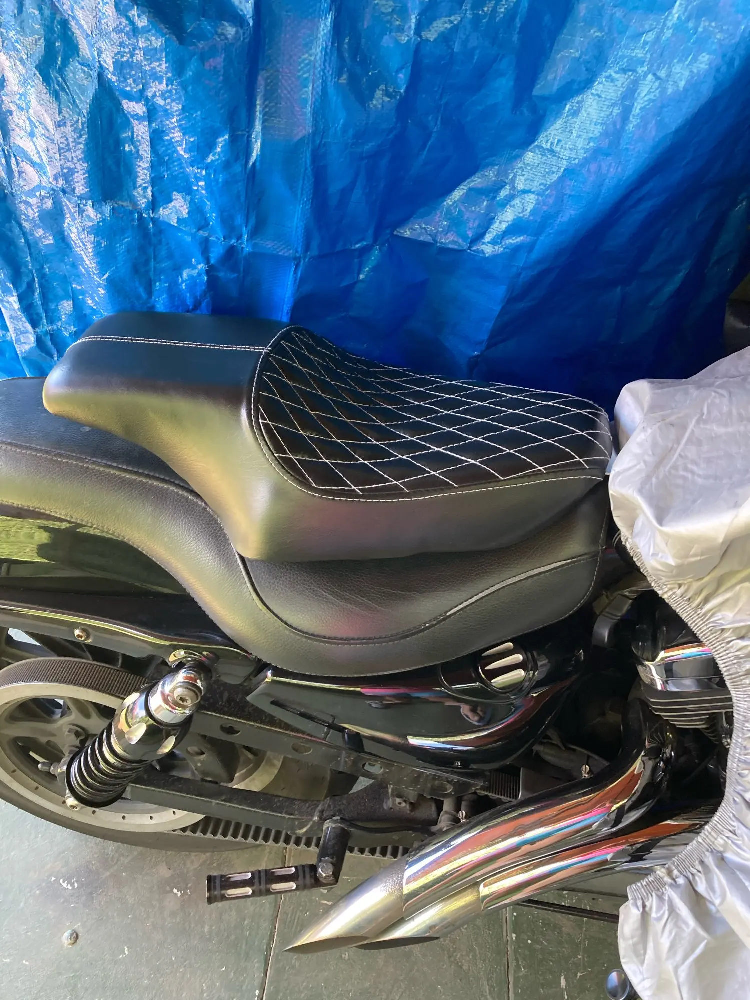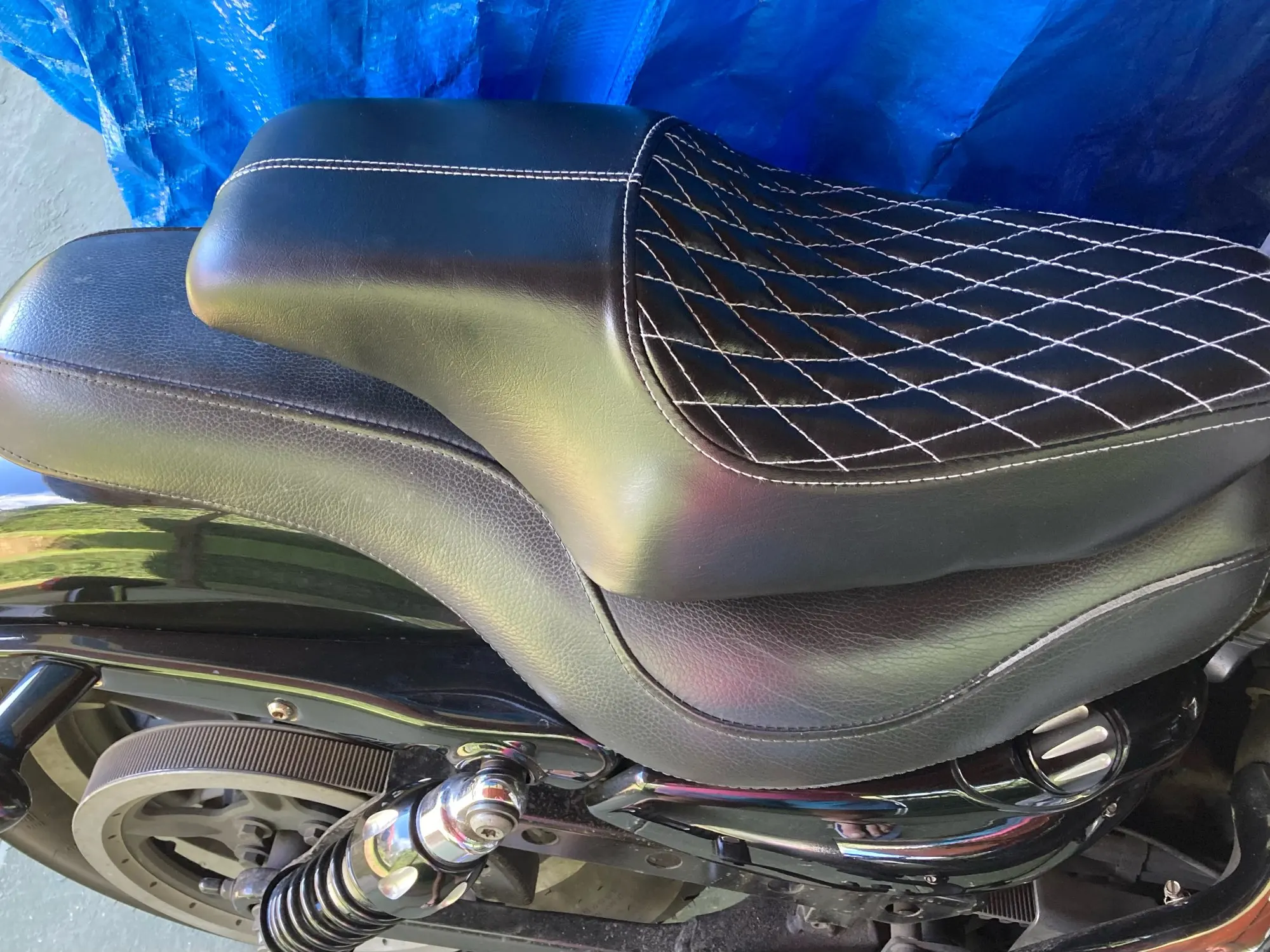 на xl883n 12ого года встало без проблем. качество так себе) но за такую цену - все хорошо. материал думаю быстро потрепается, но сделать из настоящей кожи на имеющейся базе будет не сложно