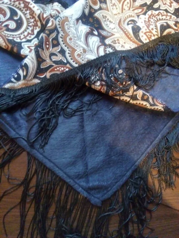 цена завышена, обычный платок утепленный ворсом. то есть кусок треугольной ткани с бахромой