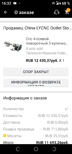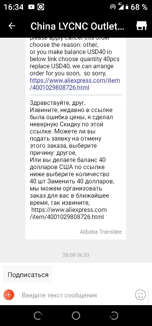 при оплате продавец запросил ещё 40 долларов якобы ошибка в цене , я отказался , отменил заказ указав причину " продавец увеличил стоимость заказа" , продавец товар отправил ( не мне) а для меня подсунул чужой трек номер. Я открыл спор , деньги вернули. Второй раз здесь я ни чего не куплю !