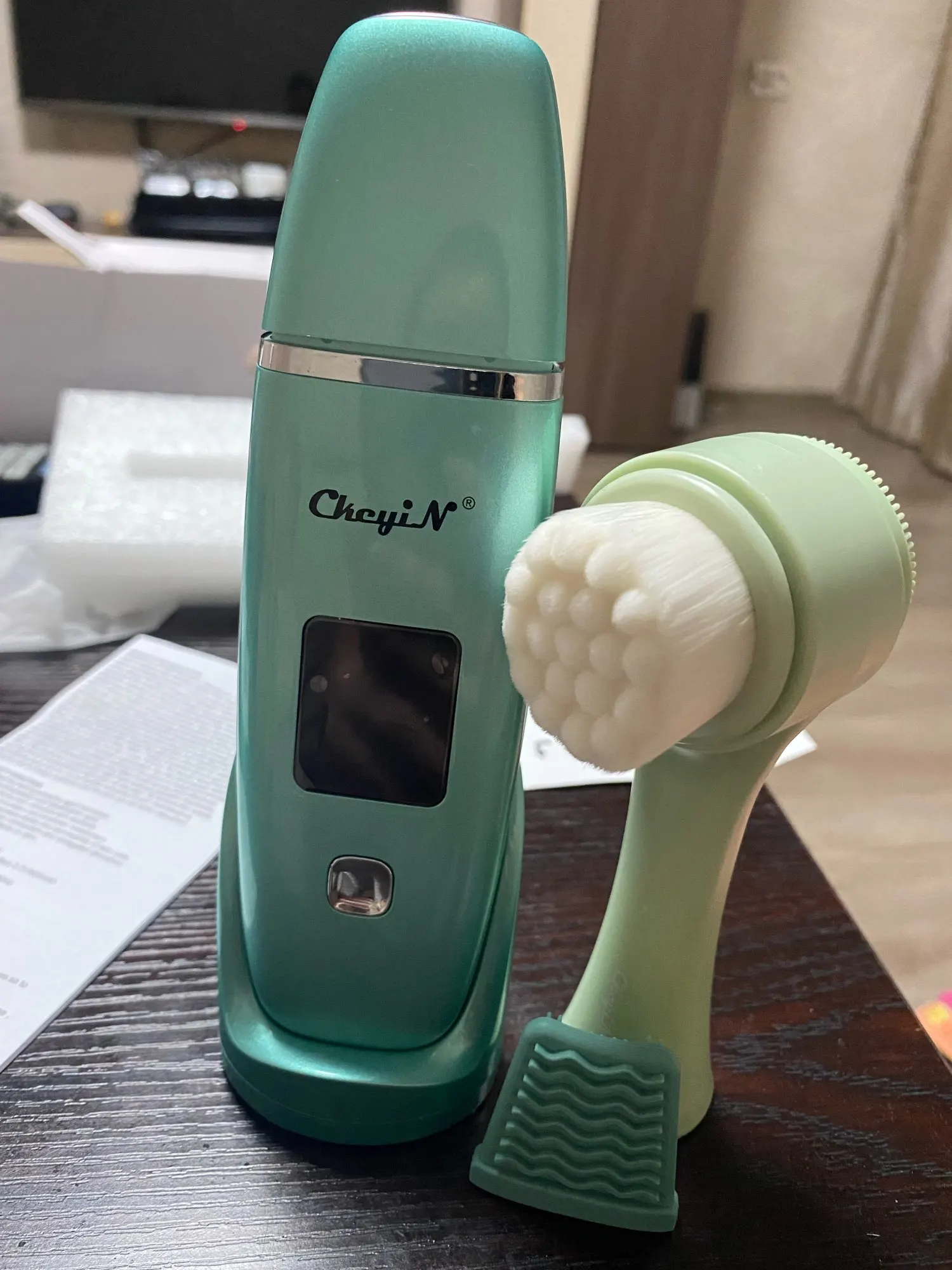 Первое впечатление от использования - деньги на ветер. Только с третьей попытки поняла, как использовать его эффективно и очень довольна - эффект действительно есть, результат гораздо лучше, чем от использования обычных кремов-скрабов, на следующий день лицо на ощупь как у ребенка! Доставка 10 дней в Пятерочку, пришел частично заряжен, обошёлся со скидкой и купоном продавца 1100 рублей. Выглядит очень симпатично, удобное управление, наличие дисплея и зарядного стакана, но можно заряжать напрямую microUSB. Инструкция только на английском и китайском, на последнем фото автоперевод на русский язык.
