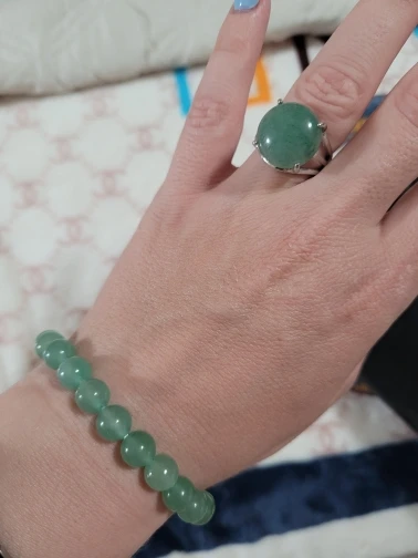 Камень натуральный, выглядит хорошо. В основном халцедон-хризопраз. На кольце легкий авантюриновый эффект.