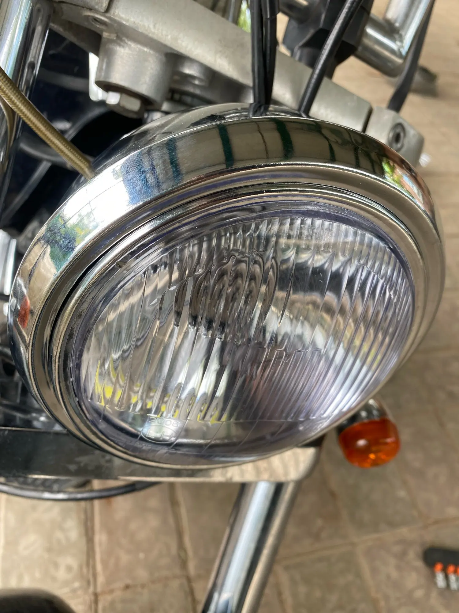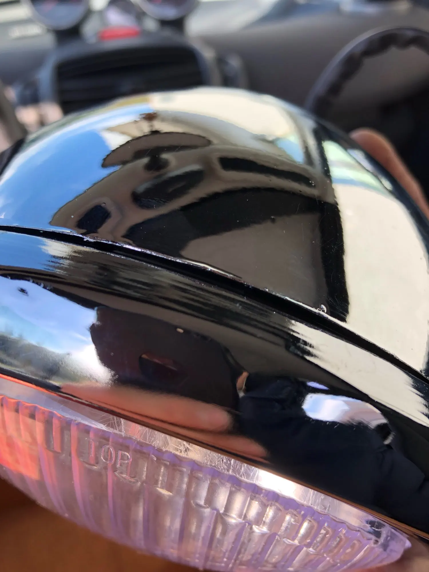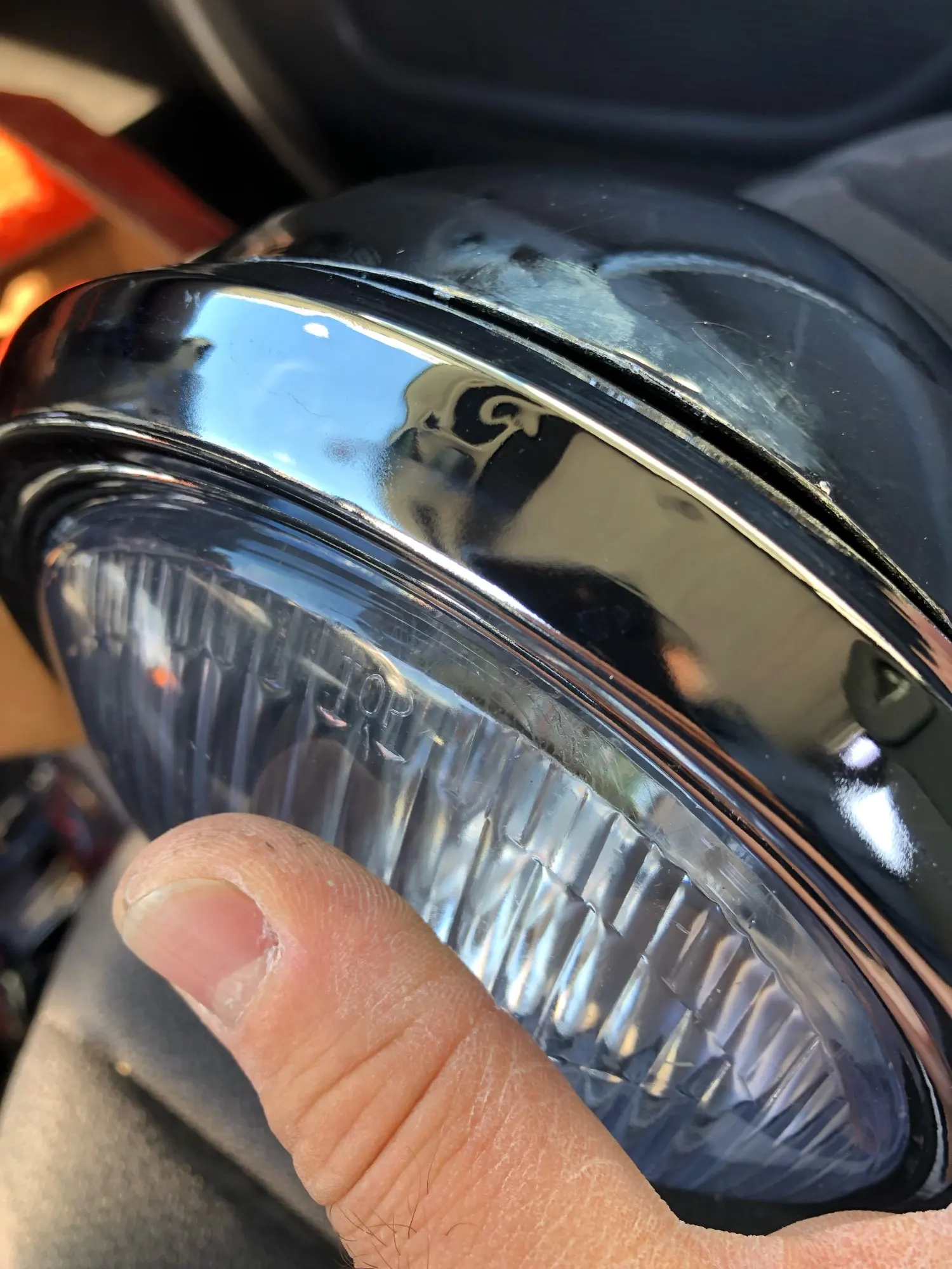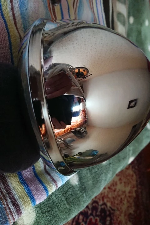 На корпусе поцарапал хром(ну это скорее всего при перевозке) ... На зеркале (внутри) тоже коцка не маленькая... Это уже к продавцу притензия... Качество не очень... Не правильно выставлены лампа относительно стекла, стекло - относительно корпуса фары...