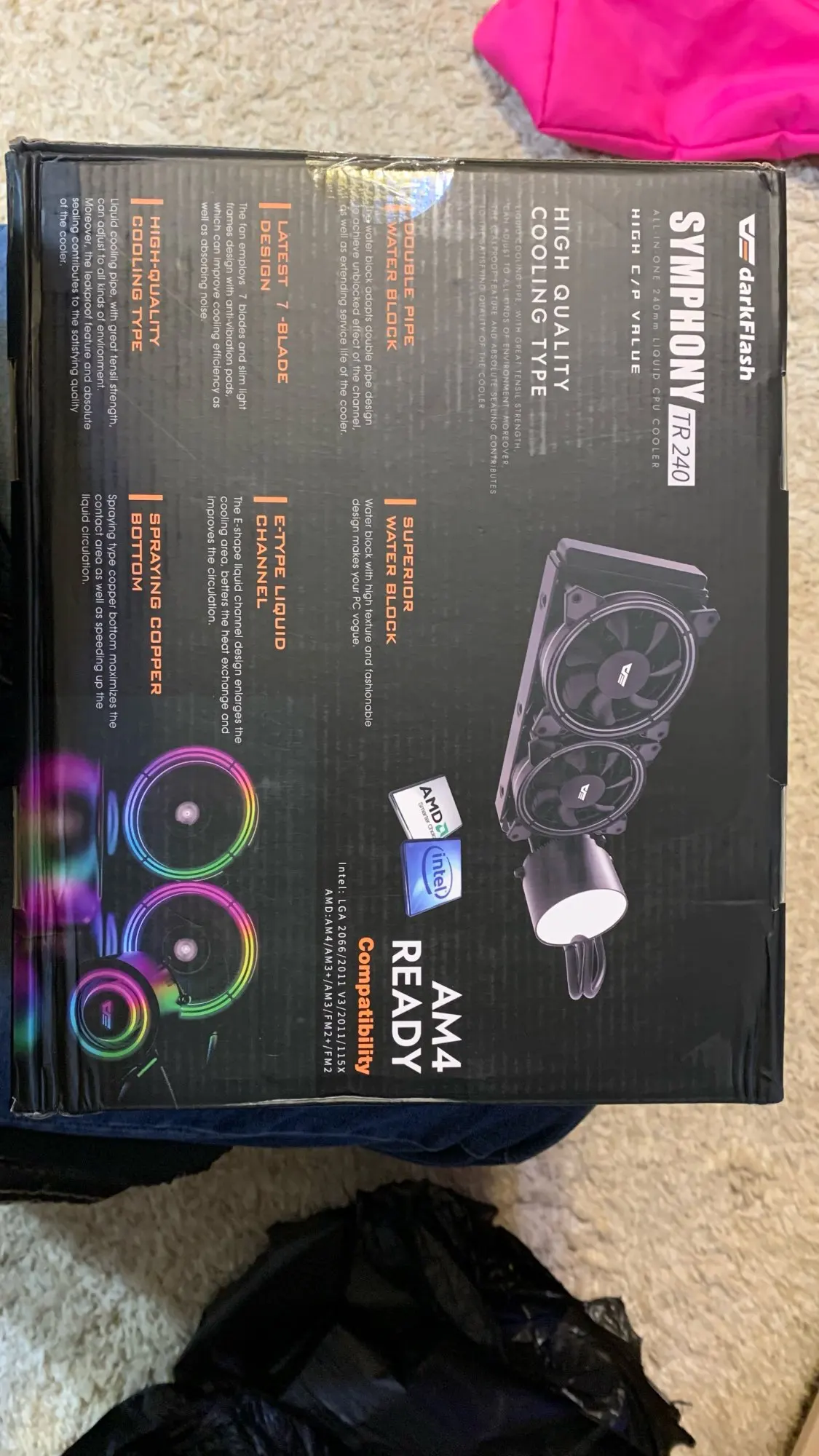 Пришла посылка за 4 дня. Встала в корпус как влитая. Разница по температуре в сравнение с воздушным охлаждением по LinPack порядка 10 градусов. Выглядит шикарно