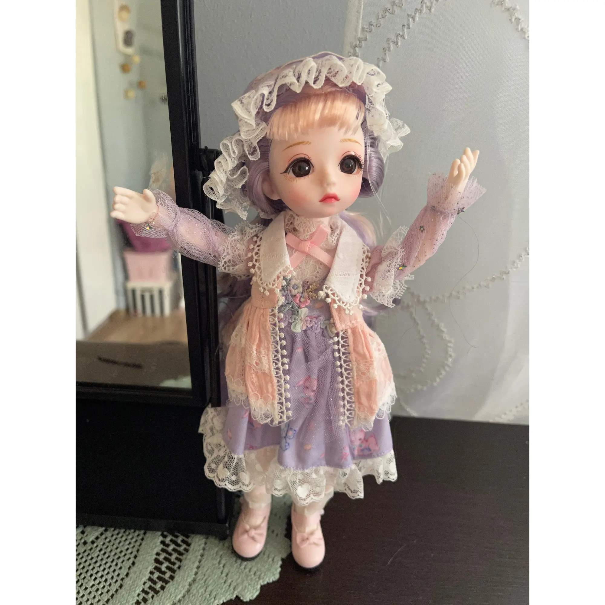 Очень красивая кукла! Добралась в одной коробке, внутри была в пупырке. На личике маска. Коробка была помята. Дошла за 2 недели. Спасибо!